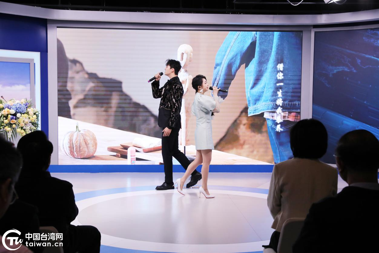 发布会现场,来自中国台湾地区的青年歌手魏晖倪与中国铁路文工团青年歌唱演员赵学飞对唱《青山青》主题曲。(中国台湾网记者陈佳慧摄)