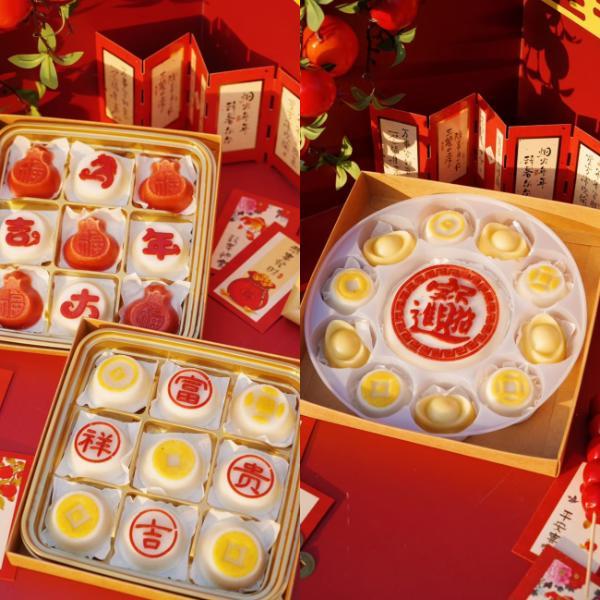 此次推出的春节方糕系列,包含“马年大吉”“马上暴富”“财神偏爱”等主题,馅料在传统豆沙、枣泥基础上,新增当季草莓等水果口味。造型设计上,融入剪纸风格的醒狮、灯笼、中国结、福袋、锦鲤等吉祥图案,兼具美感与寓意,受到不少市民青睐。