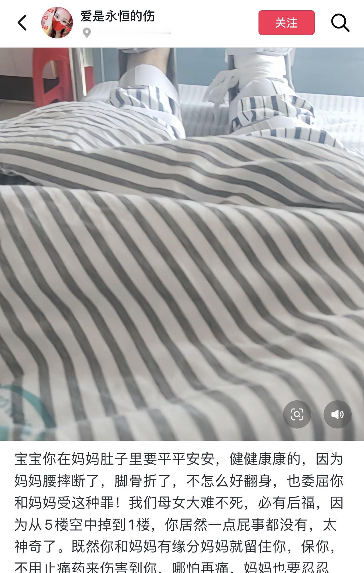 大龄孕妇、孕早期、5楼坠落、骨折,不敢想象老祖宗在底下磕了多少个头才保住这娘俩。 刷到浙江一40岁女网友发布的视频,初看视频只有一个坏掉的洗衣机,还以为说的是什么东西从5楼掉下来砸了洗衣机又砸到了网友。 但结合她的文案以及她在评论区的回复才意识到是她本人在爬楼时累了,想要扶一下扶手休息一下,结果扶手居然直接断了。然后她从5楼掉下来砸到了洗衣机上,幸好洗衣机帮忙缓冲了一下,最后虽然把腰摔断了,腿摔折了,但命是保住。 更惊奇的是当她被送到医院接受治疗时才知道自己竟然怀孕了,刚刚怀孕一个月,而且孩子一点事情没有。真的福大命大,短剧都不敢这么拍,娘俩的八字也真是够硬的,这孩子以后指定能成事。