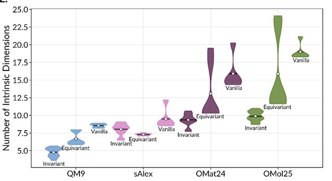 尽管这些AI的架构千差万别,但它们在处理同一批分子数据时,其特征空间的复杂度竟然压缩到了一个非常窄的范围。