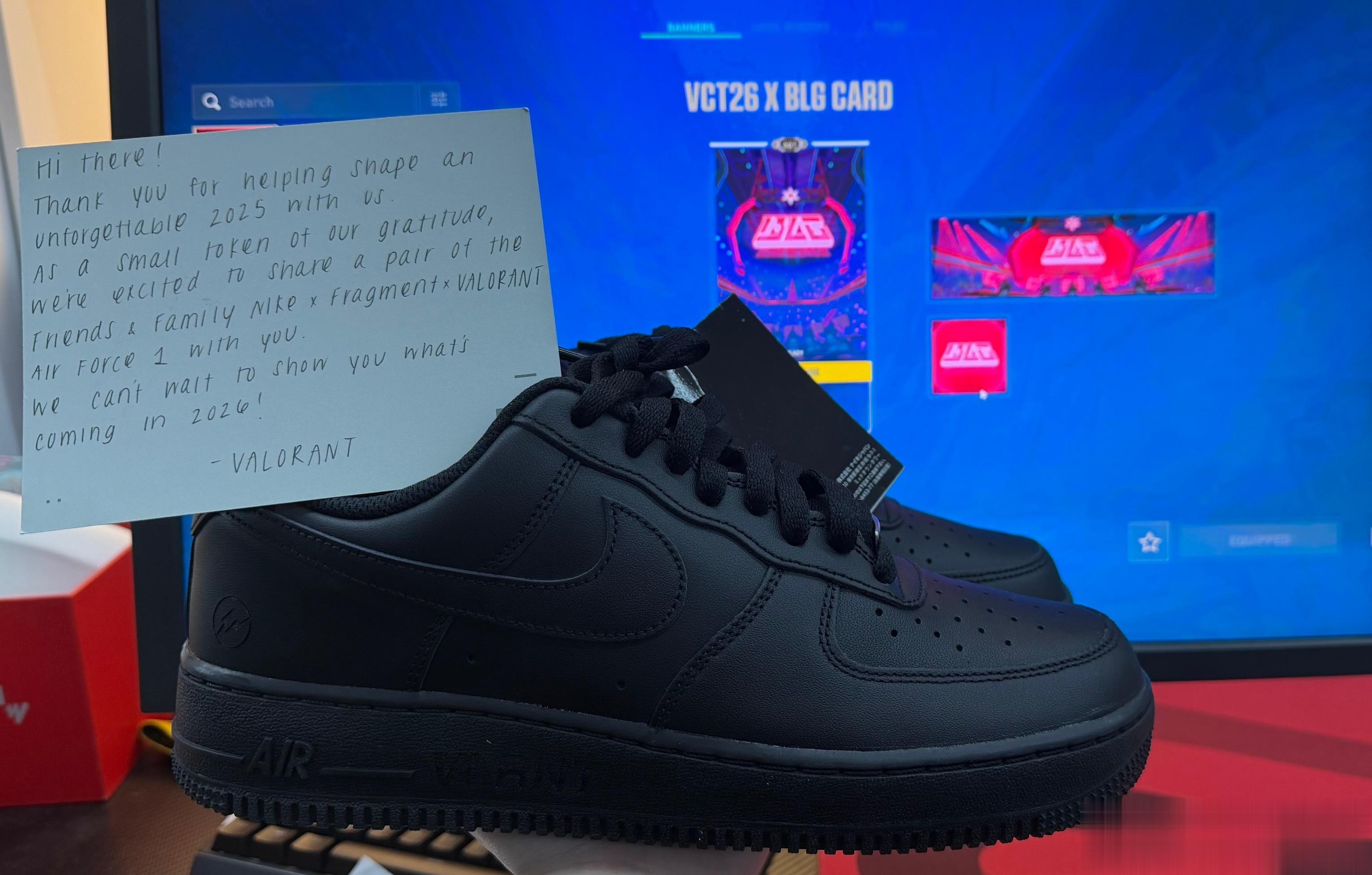 虎扑01月09日讯whzy分享瓦xNIKExFRAGMENT三方联名鞋子和BLG的标配,配文:"非常好联名非常好标配。"