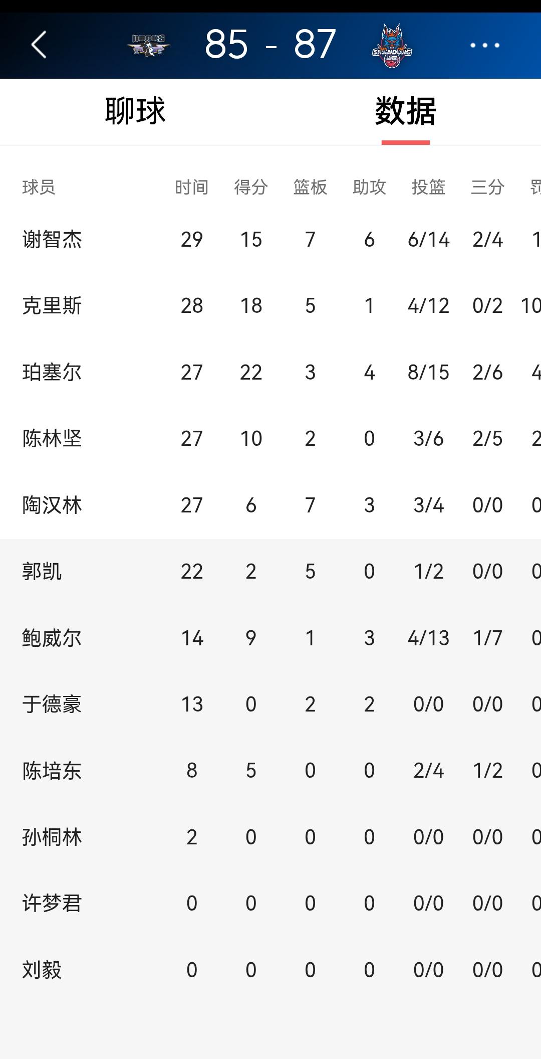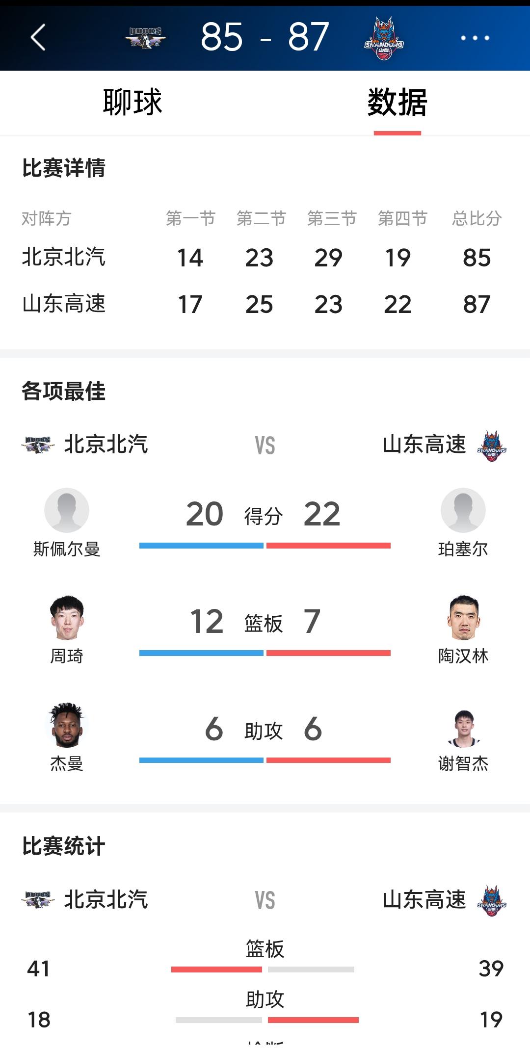 五连胜!山东高速男篮客场绝杀北京北汽男篮,谢志杰表现出色,珀赛尔投进关键球。 山东男篮在今晚对阵北京北汽队的CBA联赛中,珀塞尔终场前的抛投绝杀以87-85战胜对手,豪取五连胜;珀塞尔隔扣周琦引爆冲突,山东队的高诗岩因伤缺阵,主帅邱彪禁赛无法临场指挥。 周琦被后卫隔扣,画面太残暴,周琦现在这表现难怪打不过韩国队。山东队的于德豪在比赛中多次出现失误,建议别上了,紧接着于德豪传球还是失误,克里斯为山东男篮拿到球权,珀赛尔完成绝杀,山东男篮客场87比85击败北京北汽队,取得五连胜。 山东队的克里斯18分,珀赛尔22分,谢智杰15分,陶汉林6分,鲍威尔9分,陈林坚10分。于德豪0分,于德豪,真的是无语了,关键时刻,失误加失误,干嘛还让他上场? 恭喜山东队在客场取胜,北京北汽队个别队员实在太嚣张了,裁判每次判罚都要去理论,还把山东球员打得鼻青脸肿,真的过头,希望你们把国内联赛的气势带到世预赛场上,今天还是看直播的球迷应该心情一样。 现在北京北汽队里阵容豪华,因为全是老大所以就没有老大,没人能站的出来,银河战舰太豪华主教练反而得端水,所以现在要么裁人,要么就是谁好谁时间长,而不是一味按计划行事。 希望山东男蓝小外援和于德豪这两名球别让上场了,养着就行,他俩上场就把争的那点分给打没了看着就生气,出了失误就犯规。 山东男篮的比赛终于是相对流畅了,以前看山东的比赛,感觉真的好滞涩,明明内线投射就不太行,现代篮球之下,核心后卫,肯定得有攻有防啊,你核心后卫都不投,难道等着角色球员扛起进攻大旗吗? 现在不一样了,内线克里斯有篮,外线后卫珀赛尔,谢智杰有攻有防,加上还有投手陈林坚,陈培东,球流转起来才好打[赞]!加油加油!恭喜山东五连胜!