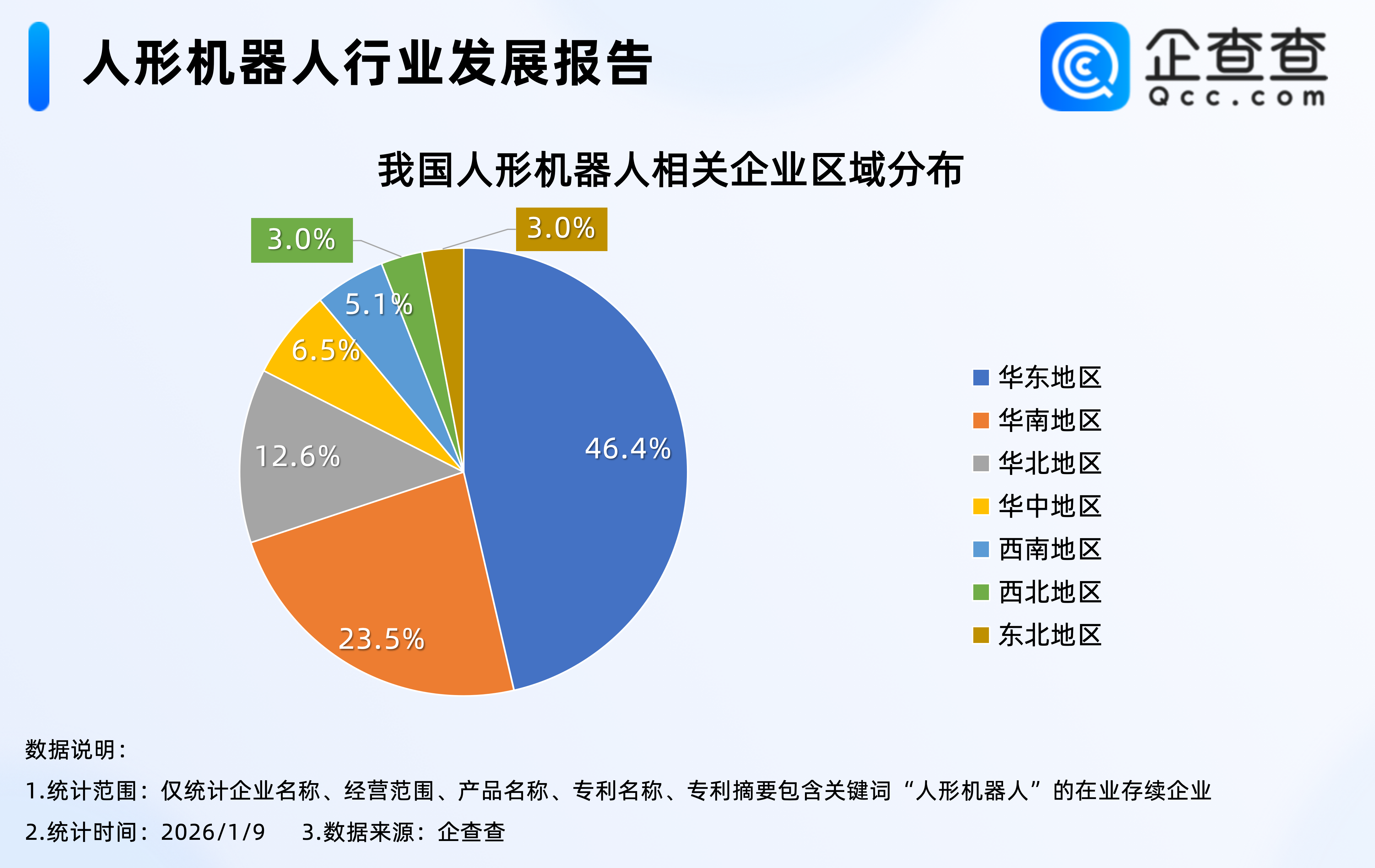 2.从区域分布来看:华东地区最多,占比46.4%