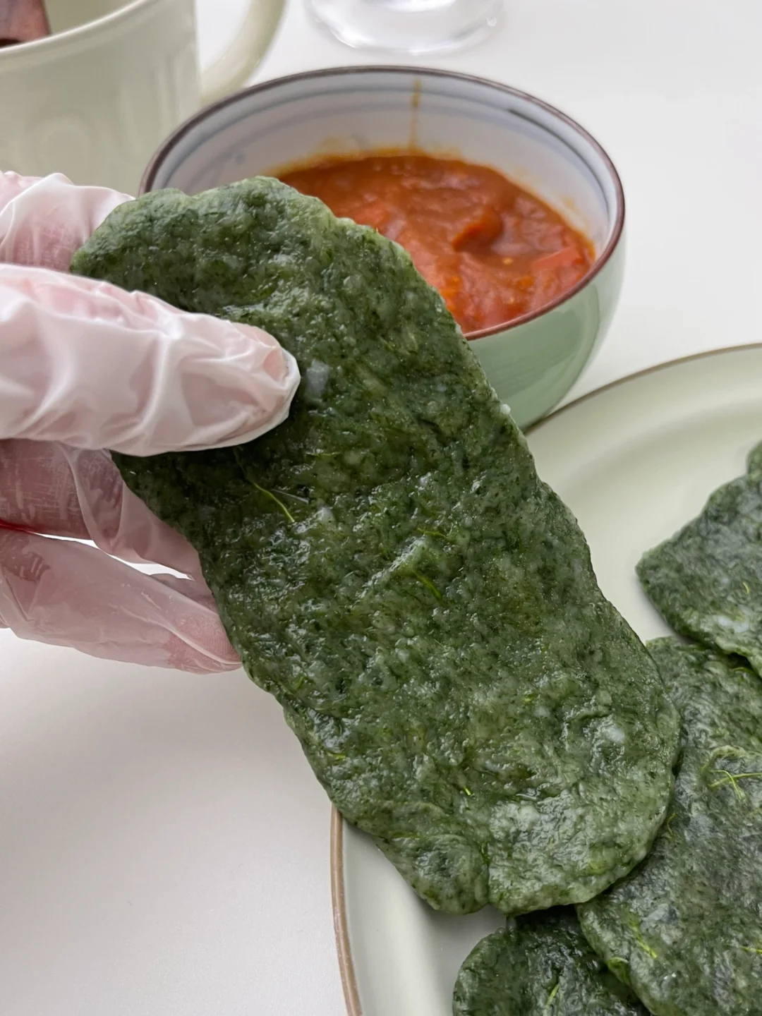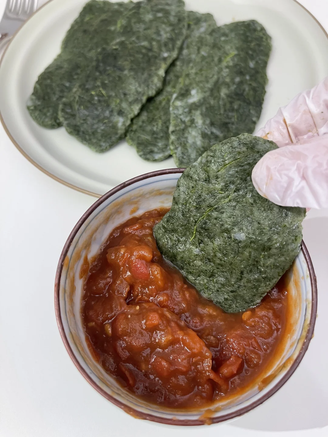 吃痩不饿瘦…快试试自制番茄酱蘸菠菜面