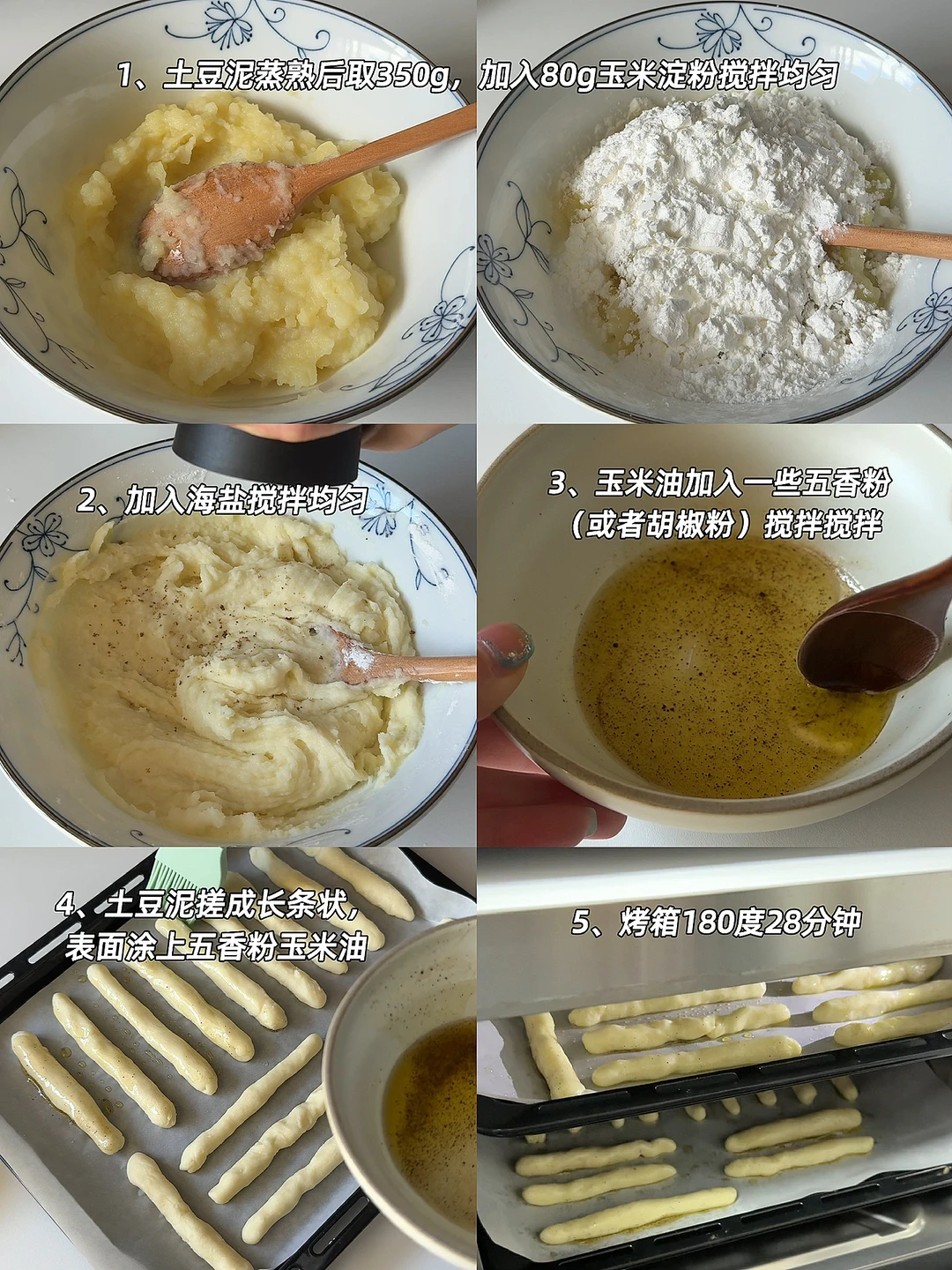 [向右R]食材:蒸熟的土豆泥350g、玉米淀粉80g、海盐、玉米油、五香粉
