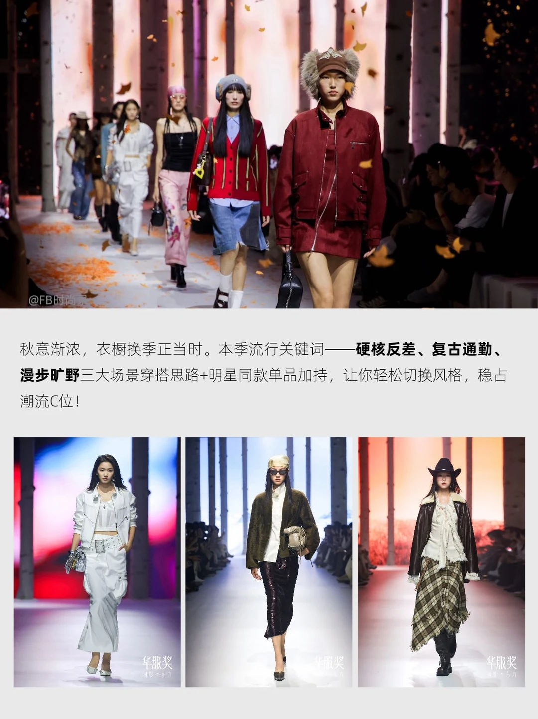 🟡 秋意渐浓,衣橱换季正当时。本季天猫服饰和ELLE一起办的华服奖,提出了都市游牧/阔影东方/千禧回响/松语绒光4大趋势关键词。并邀请演员@李一桐 @叶童 莅临颁奖现场。本期就从华服奖大秀为大家就日常生活中的三大穿搭场景,解读一下2025早秋的穿搭要点: