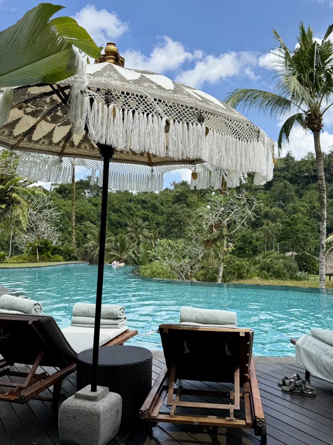 p1️⃣2️⃣酒店的公共泳池,坐下就不停的给端来椰子和各种水果,关键还美的不像话,让人心甘情愿放弃房间里的泳池