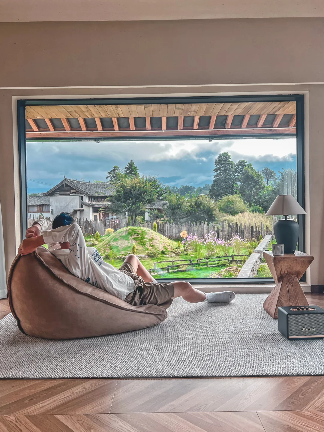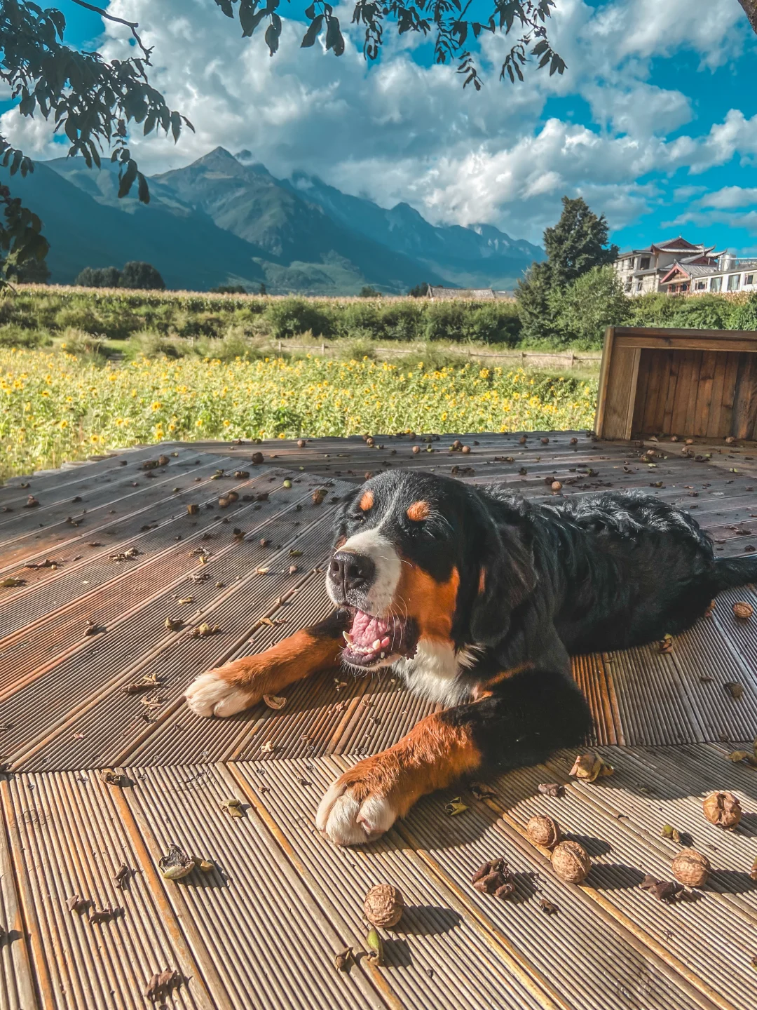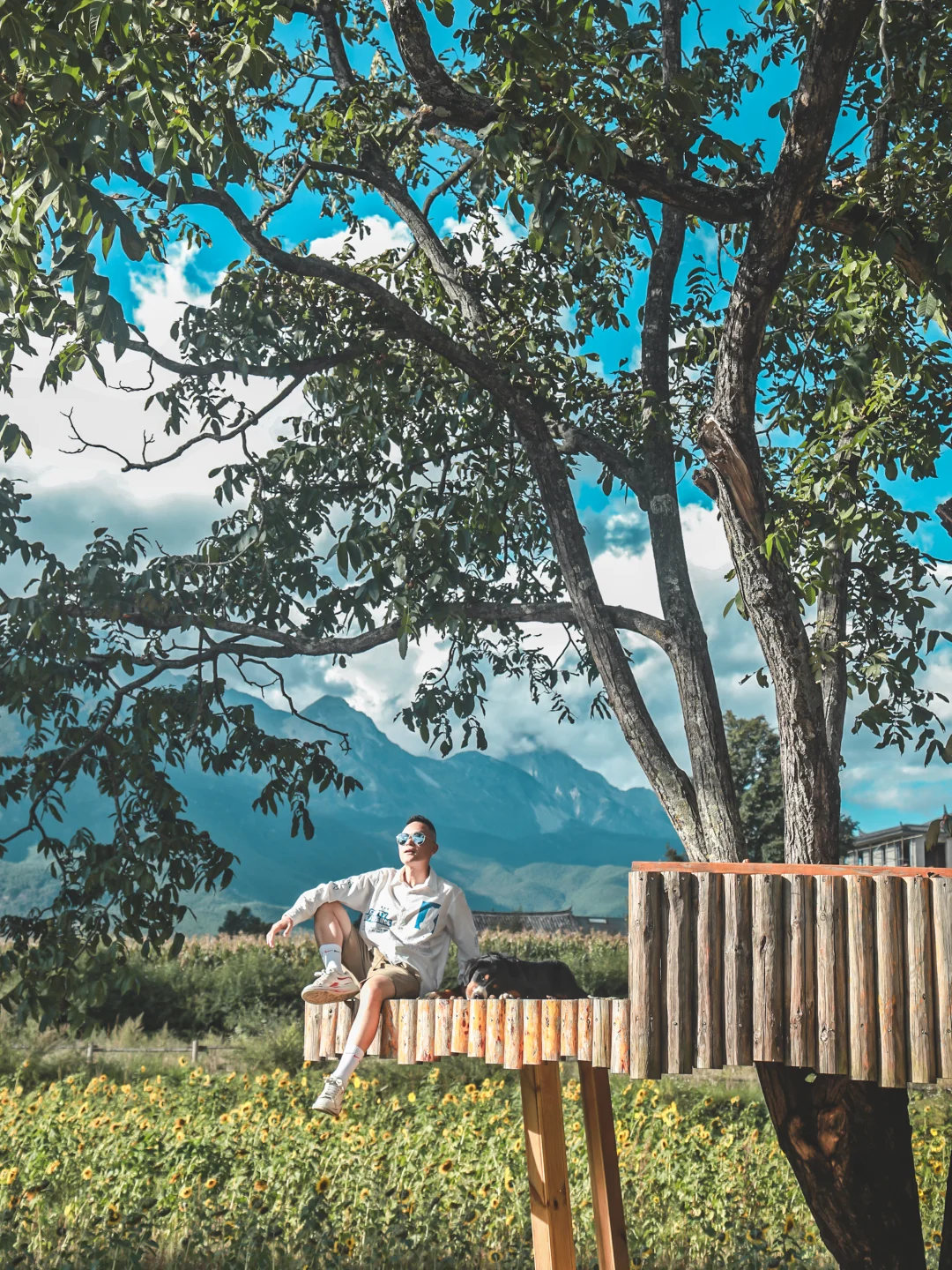 🏔️秋冬的丽江,太适合放空、看雪山、嗮太阳啦 ⛱️这一次竟然被这个雪山客厅给深深吸引了 🌞抬头就可以看见玉龙雪山 🌻门前是一大片向日葵花海 🐶还有一只叫“多米”狗狗 🐩自由自在地在田野里和伙伴玩耍 🏡它还会走上麦田树屋 🍎去上面捡核桃解馋 🐶狗狗很聪明,它会咬碎吃里面的核桃肉 💕没想到,在丽江白沙古镇 ⛱️还能享受到安静、美好的雪山田园牧歌 🌆其实,在城市久了 🌲反而更喜欢这种远离喧嚣的美好 🏔️既可以享受陶渊明笔下的隐居生活 🥃又可以步行仅6-7分钟,在白沙古镇感受人间烟火! 👍隐居在丽江田园牧歌,太惬意了。