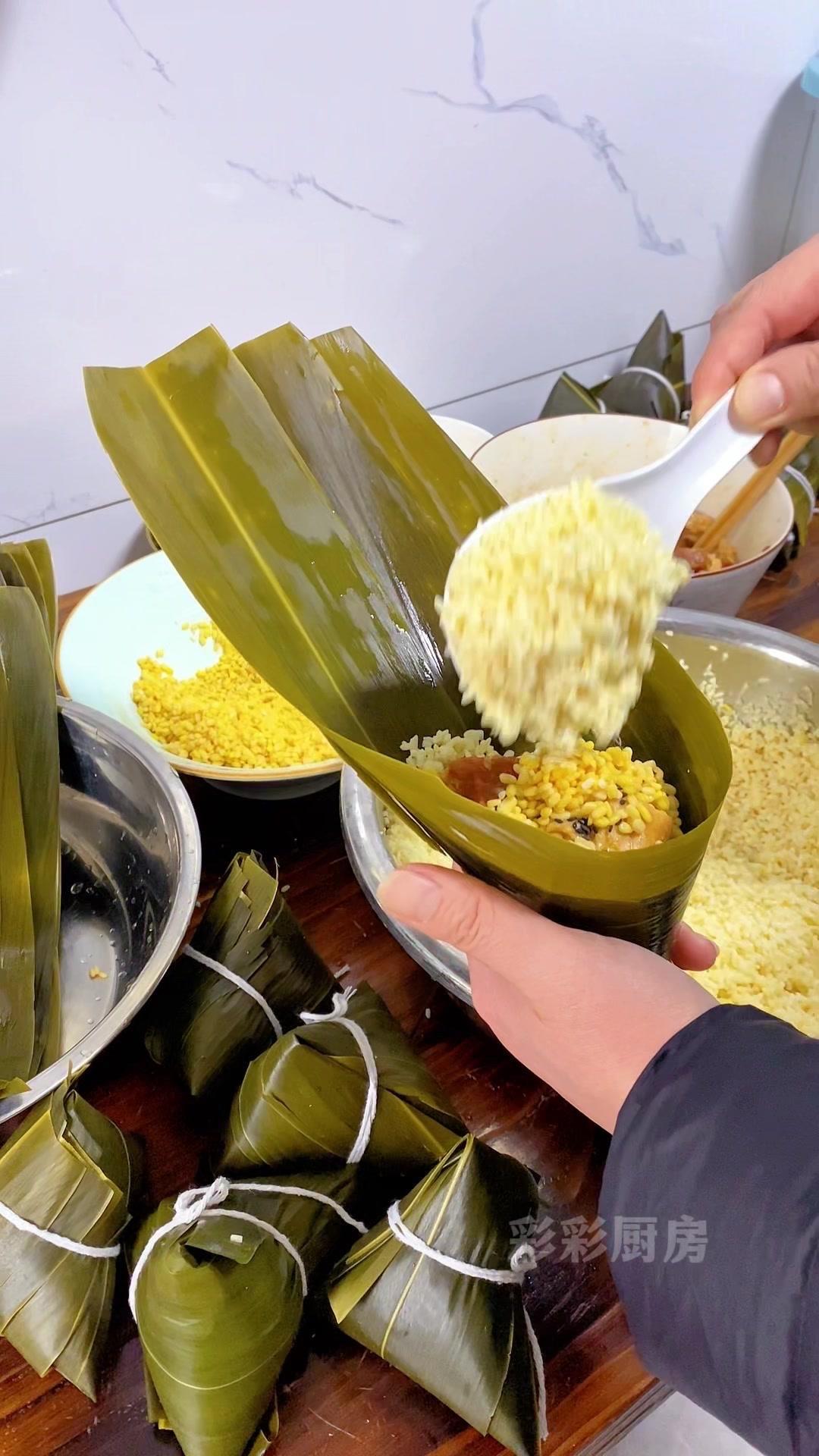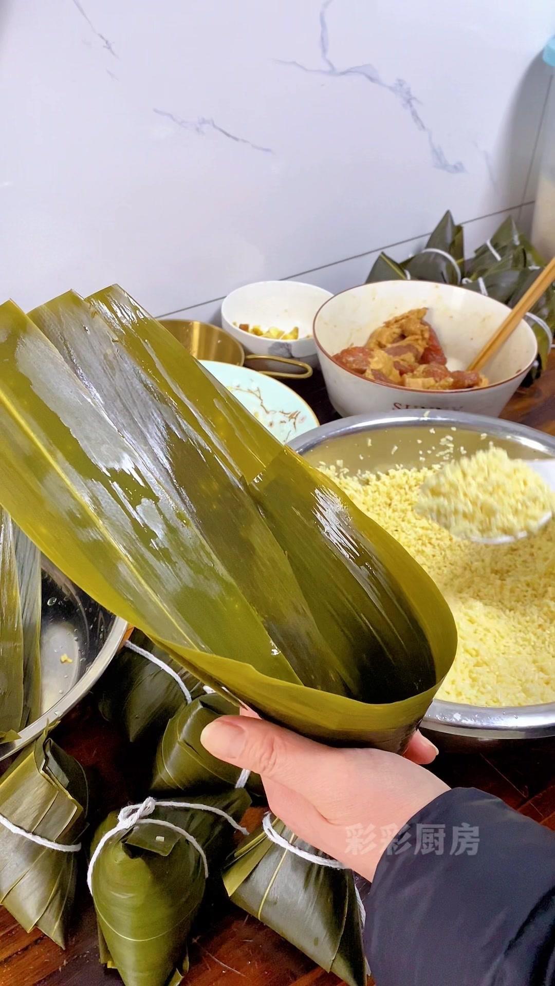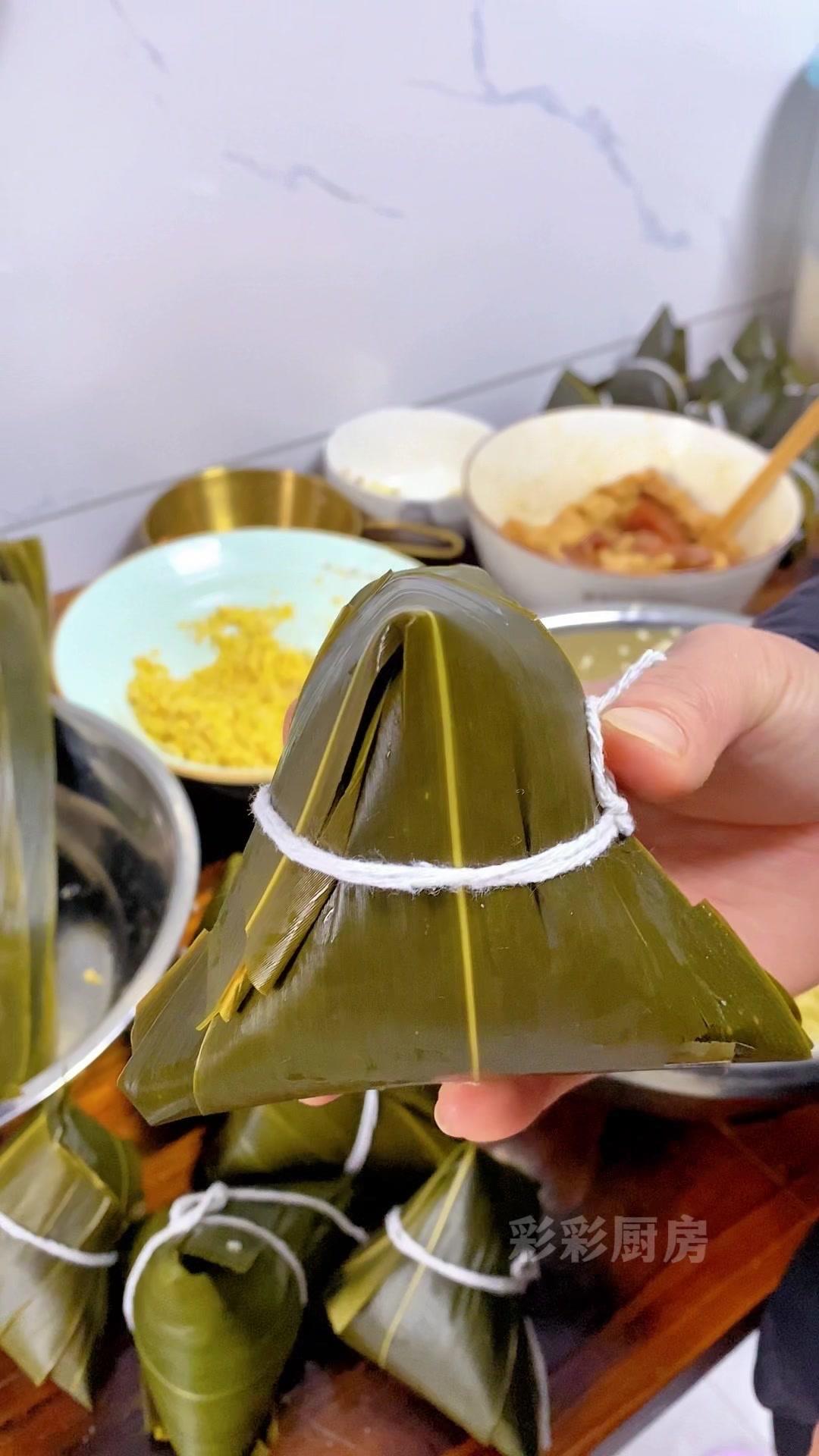 🌾用传统灰水浸泡糯米,米香更浓有嚼劲。提前腌制好的五花肉,咸香入味不油腻,包裹在泡好的灰水里,口感层次丰富。 1️⃣准备食材:糯米浸泡8小时以上,五花肉切厚片,用酱油、料酒、五香粉腌制2小时。灰水制作:稻草燃烧后的灰烬加水浸泡过滤备用。 2️⃣包粽技巧:取两张粽叶折成漏斗状,先铺一层糯米,放一块五花肉,再盖一层糯米,压实后折叶包紧,用棉线捆扎牢固(注意不要太松或太紧)。 3️⃣煮制方法:粽子放入锅中,加足量清水没过粽子,大火煮开后转小火煮2小时,关火焖1小时即可。软糯的粽子配上咸香的肉,一口下去超满足。