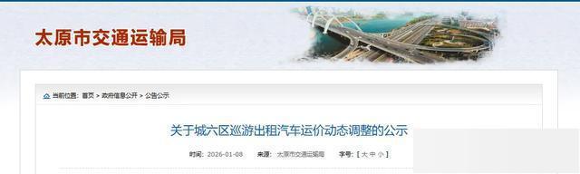 1月8日,太原市交通运输局发布关于城六区巡游出租汽车运价动态调整的公示。