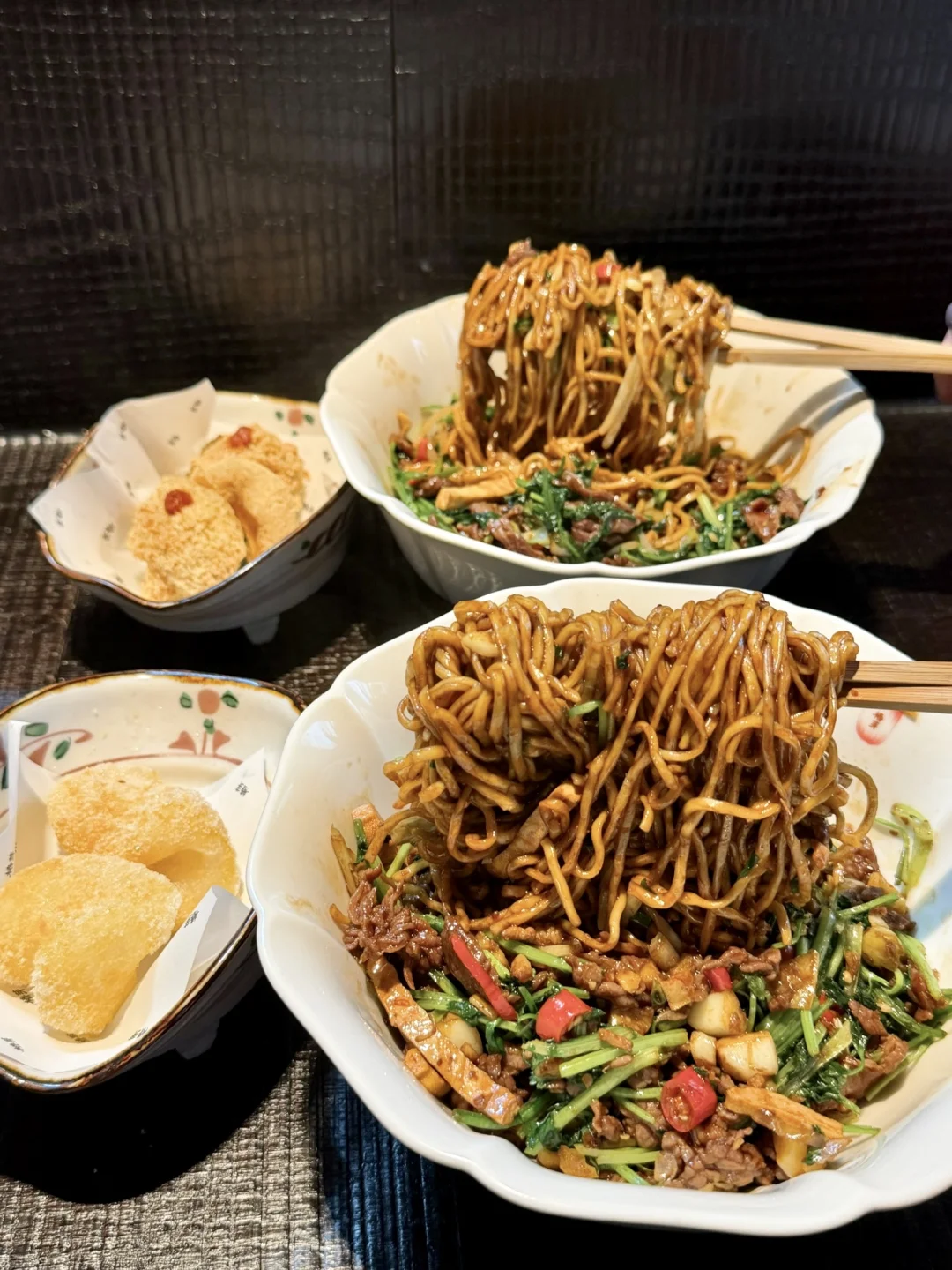 本来是跟朋友来杭州玩,偶遇这家店,没想到用到杭州的高铁票换了一个小吃!好惊喜,感觉很有人情味 谁懂来杭州的第一站就是椿芽拌川 关键是明档现炒,浇头哗啦一倒,锅气蹭蹭往上冒! 🍝香菜牛肉拌川是我的最爱❤️牛肉浓香醇厚,面条吸饱汤汁太入味了!黑松露土猪肉小笼包皮薄汁足,金灿灿的黄金芝心薯条好好吃杭州杭州探店杭州第一站吃椿芽拌川