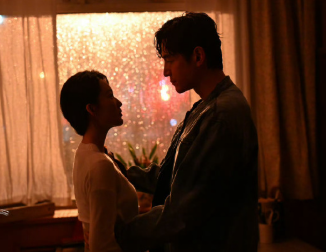 剧照以“窗边相拥对视”为主场景,暗黄色调强化了90年代怀旧氛围。胡歌饰演的厨师“樊大成”以寸头造型亮相,身着粗布工装,凸显角色的沧桑感;李沁饰演的“杨雨竹”回眸凝望,低头抬眸间传递温柔坚韧的气质。 ​​​