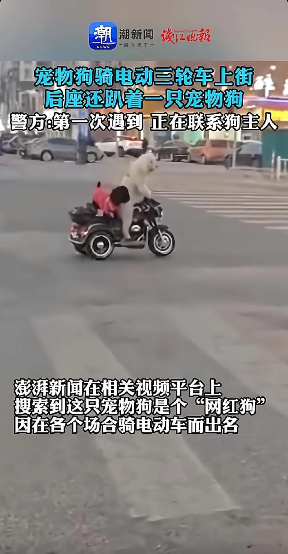 宠物狗骑电动车,惊现在道路上,这真是少有的奇事。发生的地点是江苏淮安,网友拍下了这只宠物狗骑电动车的画面,体型大一点的白狗骑在车的前面,后面车座上还趴着一只黑色的小狗,用交警的话说,他们从来都没有遇到过这样的情况,大千世界,无奇不有,真是太好玩了!