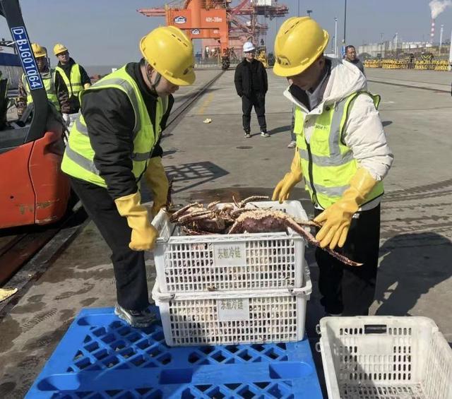 1月9日,今年首船俄罗斯帝王蟹顺利抵达台州港大麦屿港区,为广大市民送来直达“家门口”的“舌尖鲜甜”。这满满的“烟火气”,一路见证台州港的崛起与港航人的奋进。