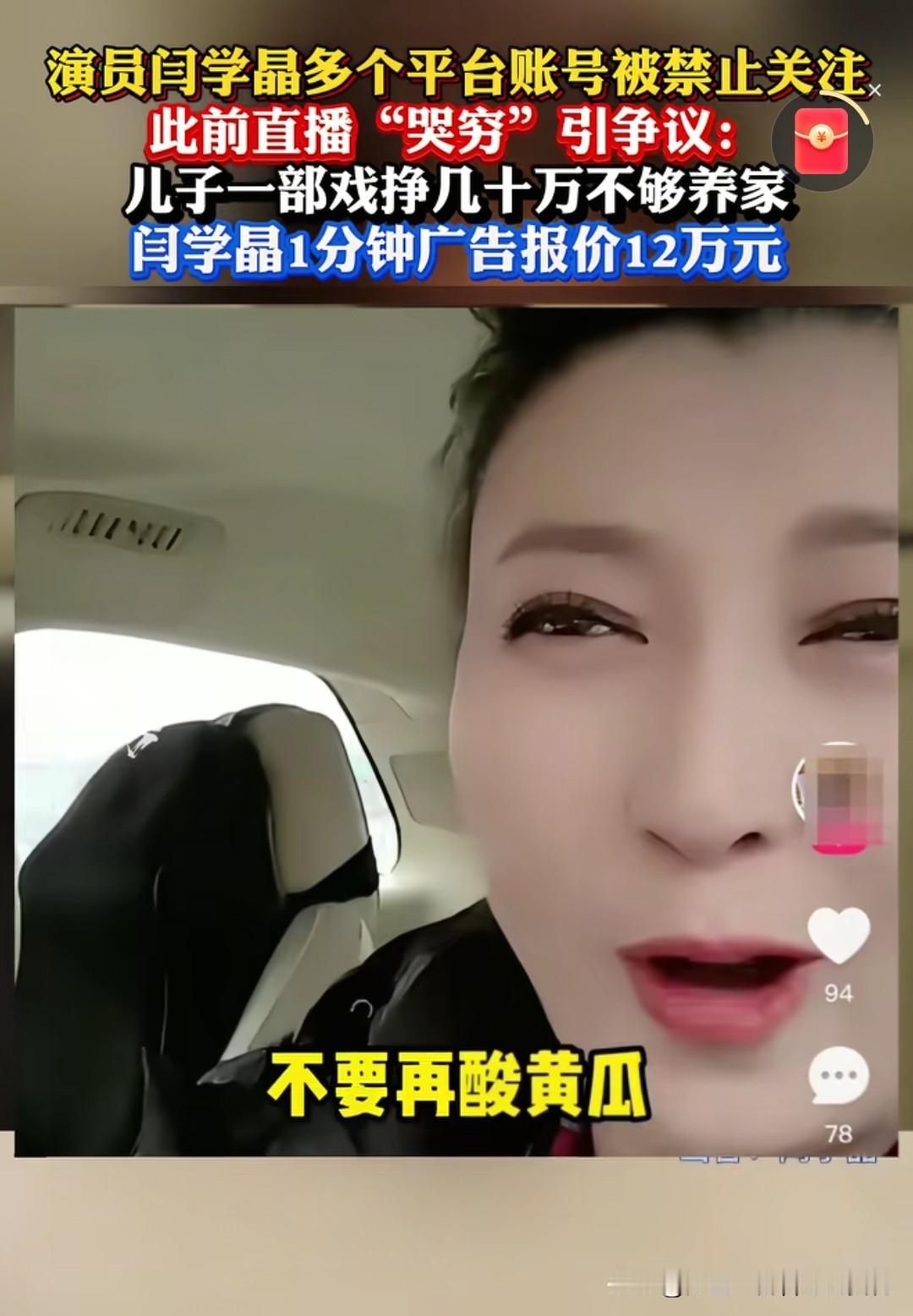 演员闰学晶终于吃到苦头了。低调做人高调做事,闰学晶完全整反了,不仅直播炫富,还哭