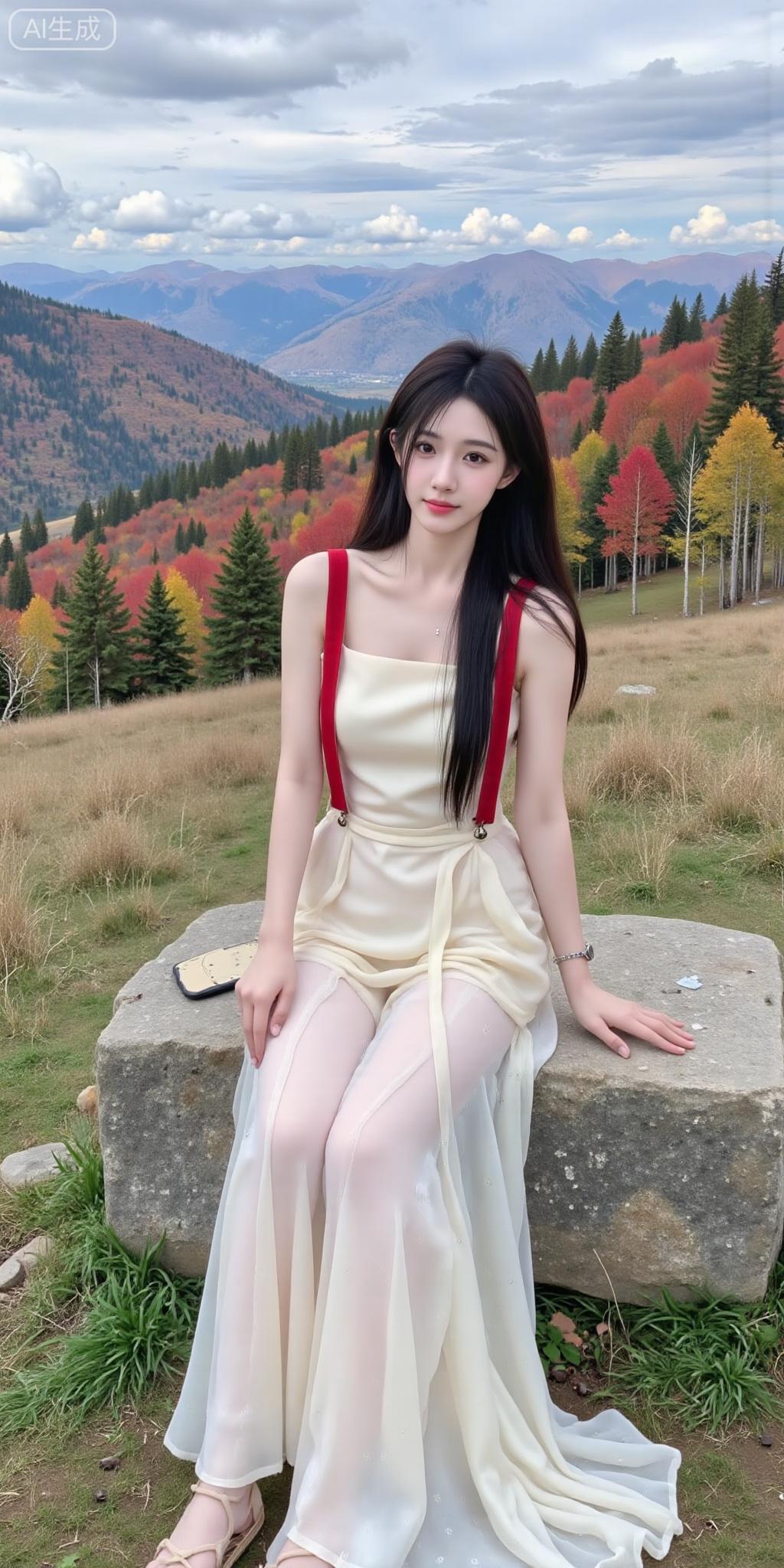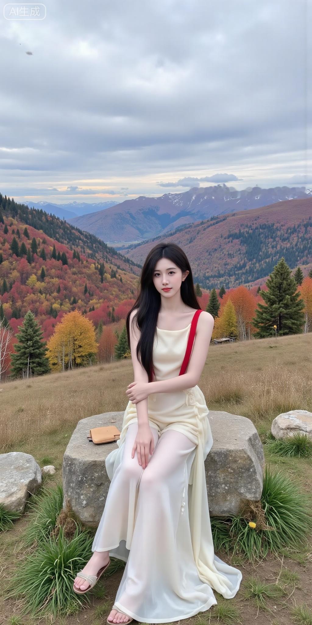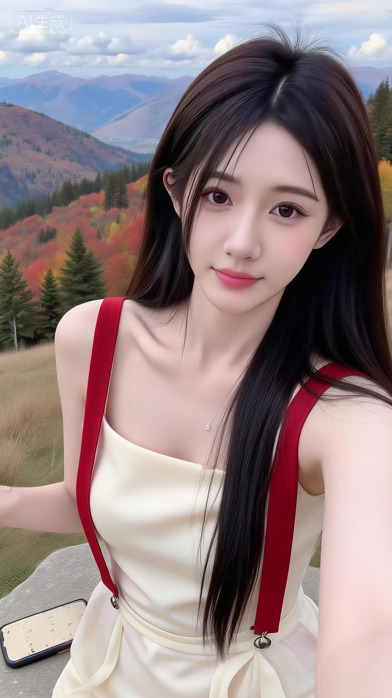 秋山背景里的氛围感甜妹 奶黄裙配酒红肩带,撞色刚好戳中审美~薄纱裙摆衬得身形轻盈,长发垂肩的松弛感,连满山的秋林都成了她的浪漫背景板✨ 是把“温柔”焊在身上的美人!