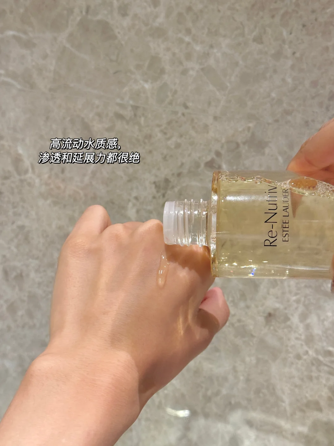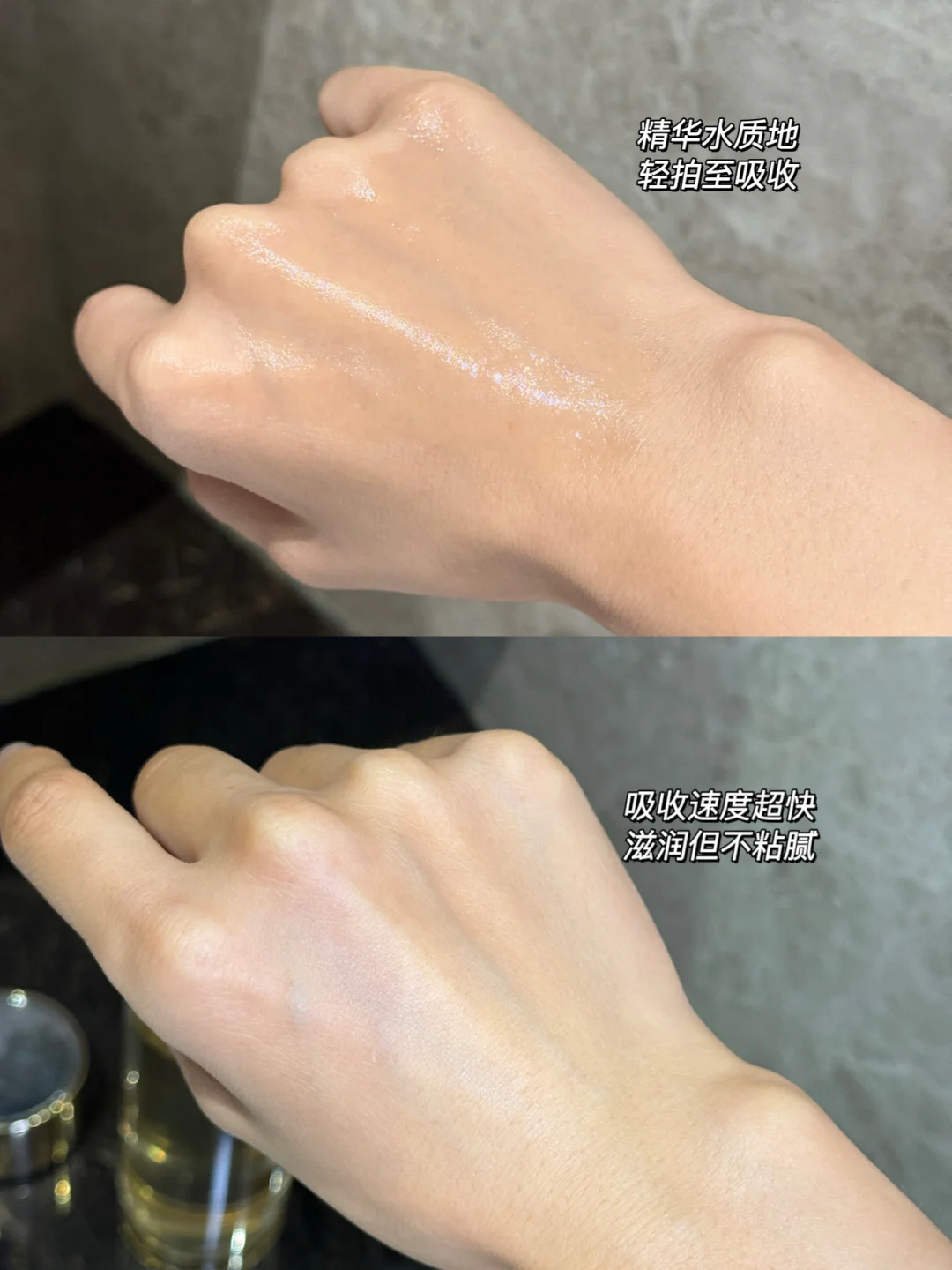 它的质地太懂旅行党了✨ 清透如丝缎,上脸拍两下就秒吸收,高效又清爽