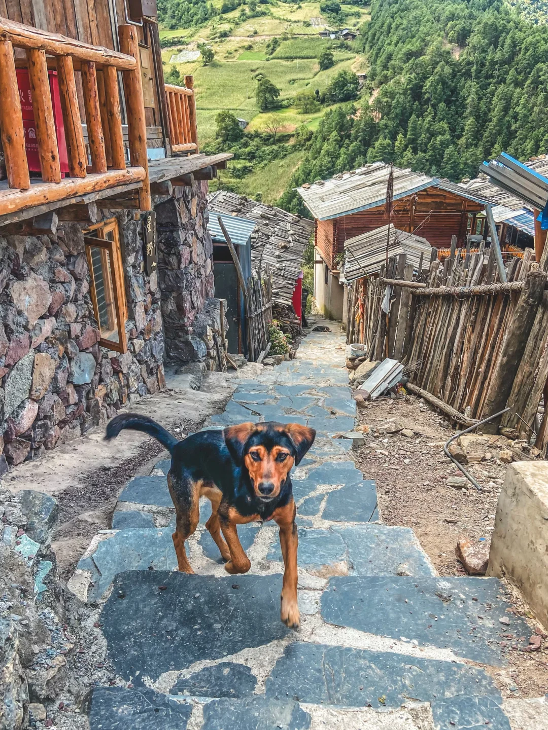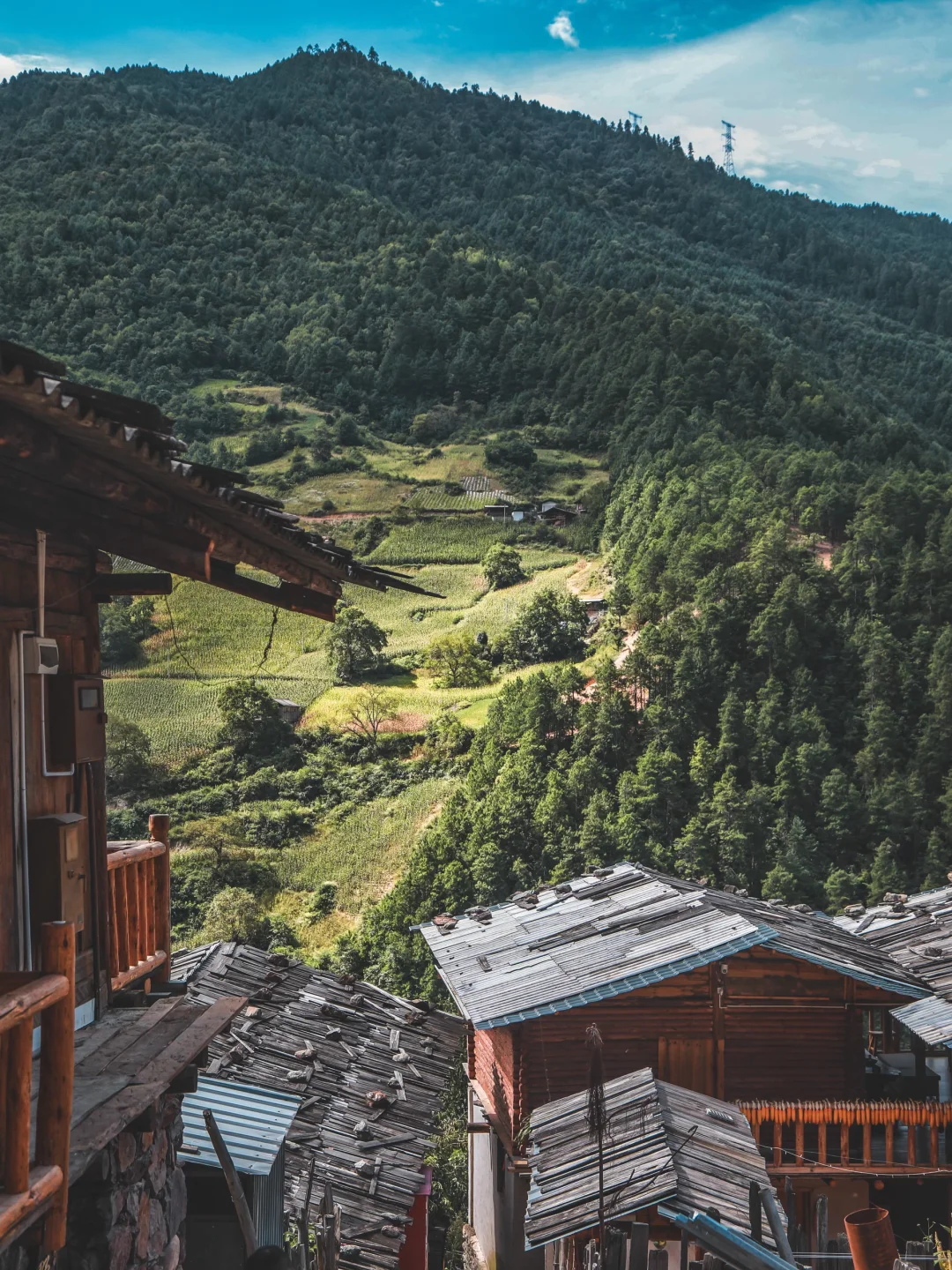 傈僳族古村寨距离茨中村大雨 1 个来小时。