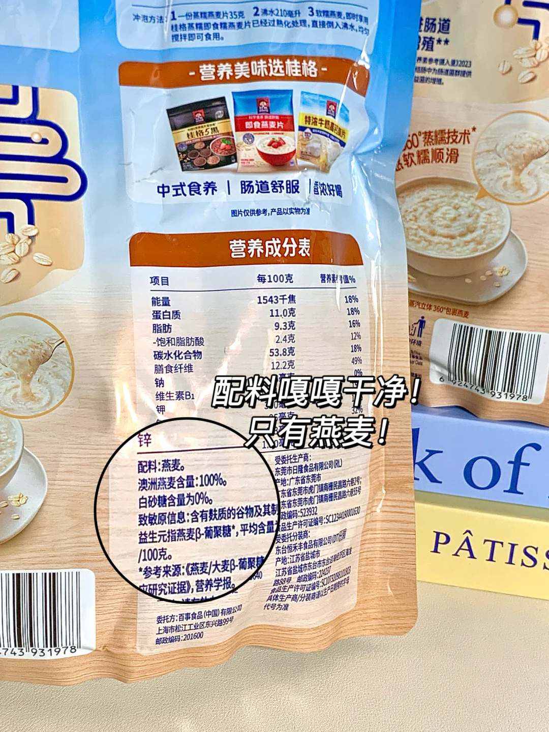 桂格糯燕麦可以代替各种主食比如米饭 健康轻负担!它采用桂格独特的360°蒸糯技术口感更软糯!制作也chao方便简单 用热水或热牛奶冲泡搅拌即可!一口下去软软糯糯满口麦香!可甜可咸随便搭配什么都好吃! 配料表也chao干净只有燕麦,富含膳食纤维,轻卡轻负担,吃完工作一上午都不饿,下午茶饿了冲一碗也很适合,没有罪恶感~