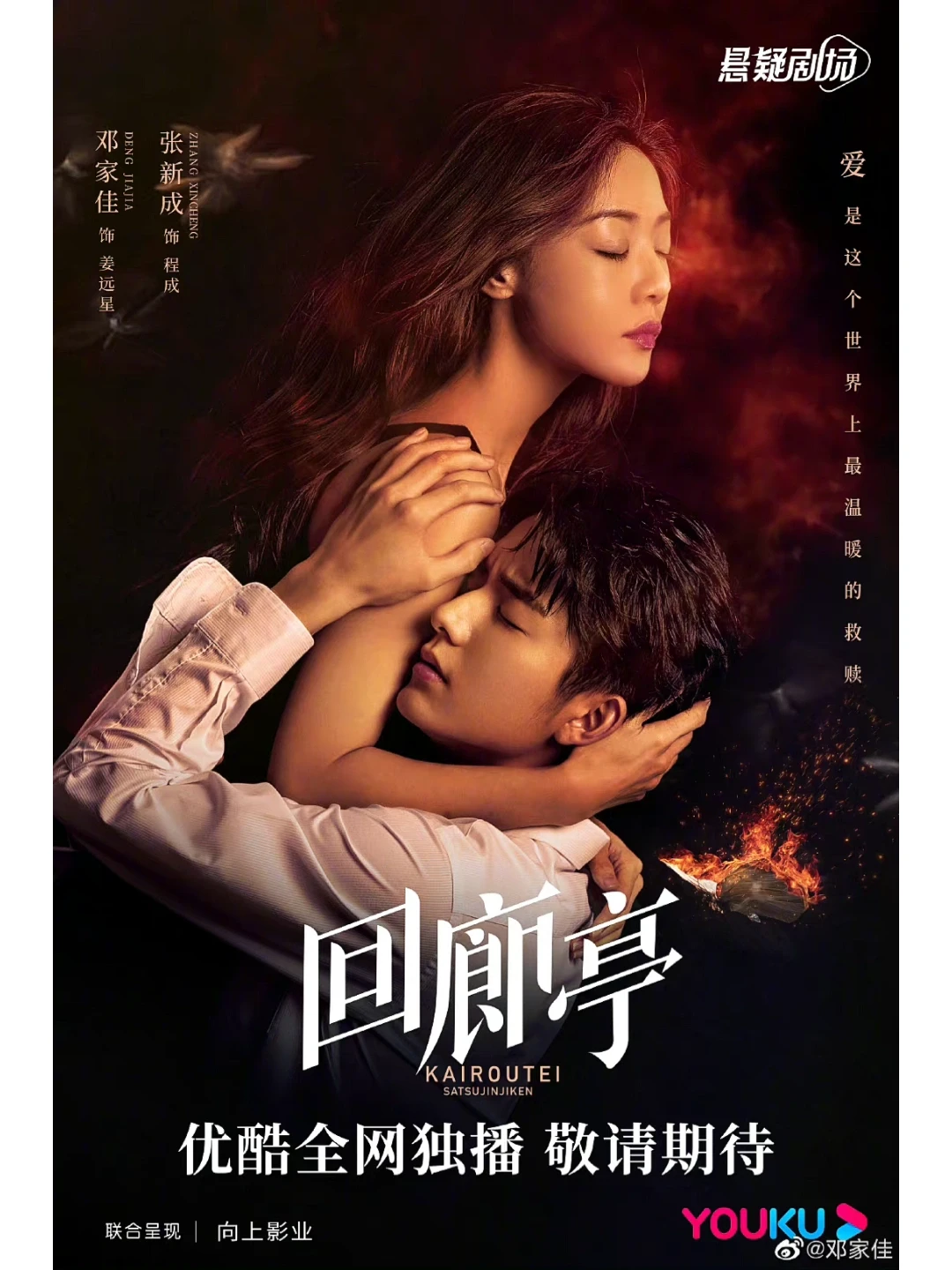 简介:该剧改编自东野圭吾推理小说《回廊亭杀人事件》,讲述了深夜回廊亭突然大火,一名男子葬身火海,姜远星严重烧伤毁容;阳光帅气的程成出现于远星的生命中,两人的命运似乎也被这场大火改变的故事。