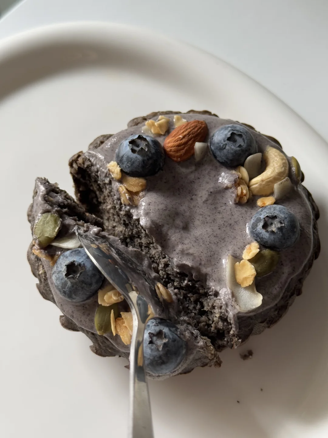 又开始认真消耗家里囤积的燕麦啦。这回做了五黑燕麦蛋糕,巨香巨好吃!