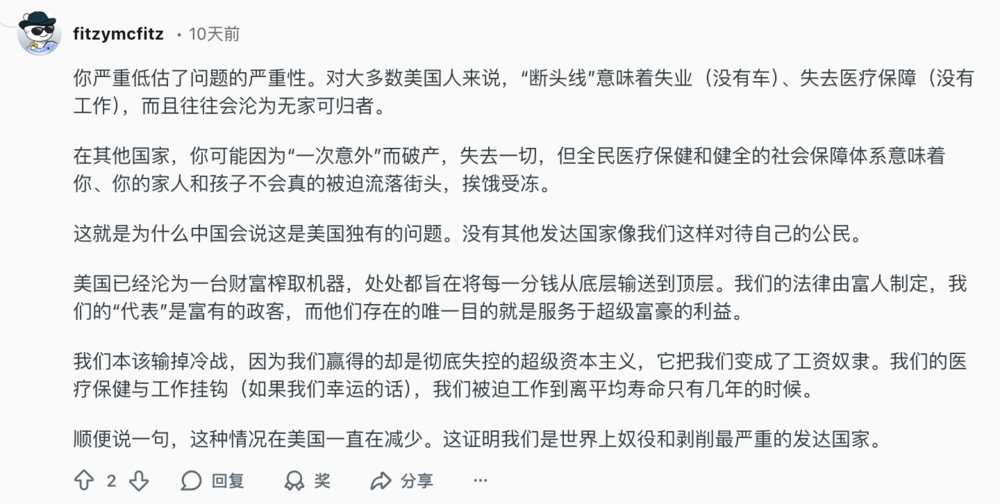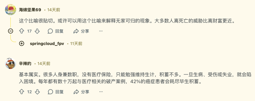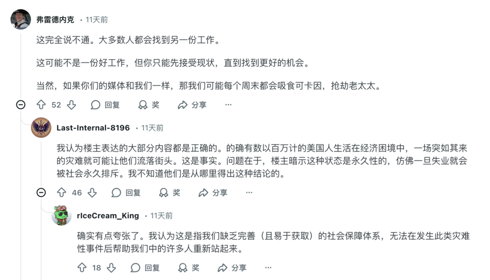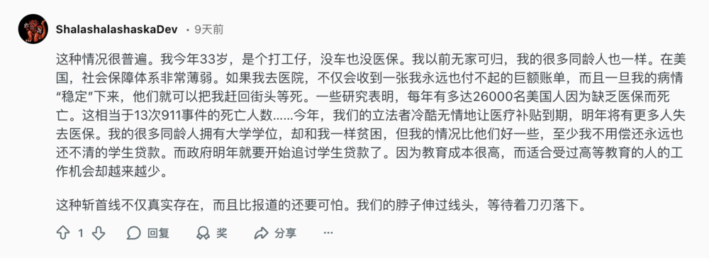 在Reddit上,美国人关于斩杀线的讨论也分为两派。