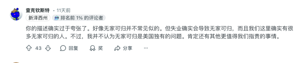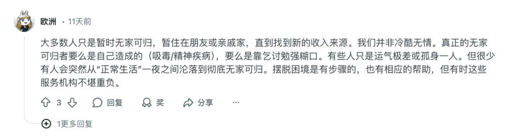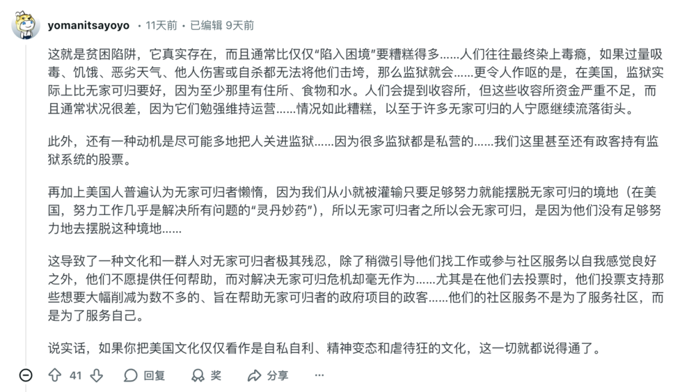由于大部分美国留学生生活条件不错,所以很少有机会接触到街头流浪汉群体,牢A所述的故事也无法逐条验证真伪。