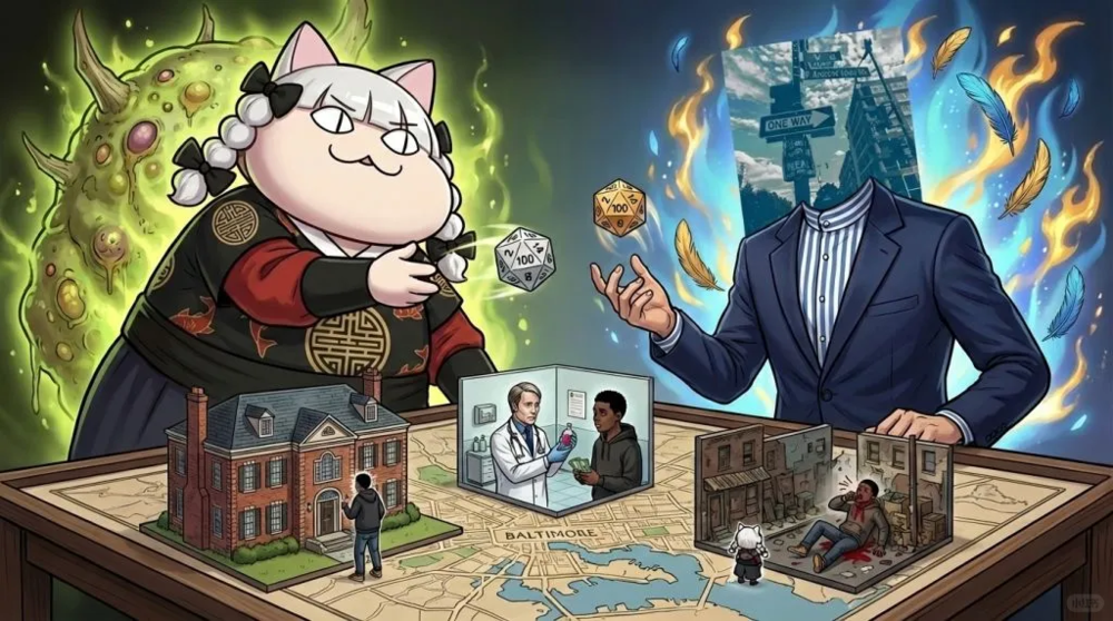 霍普金斯所在的城市巴尔的摩是一座巨型生化监狱,上等人(长生种)享用下等人(短生种)的生命,尤其是巴尔的摩与臭名昭著的德特里克堡生物实验室直线距离仅100公里,网友们更是拍大腿直呼“全都对上了”。