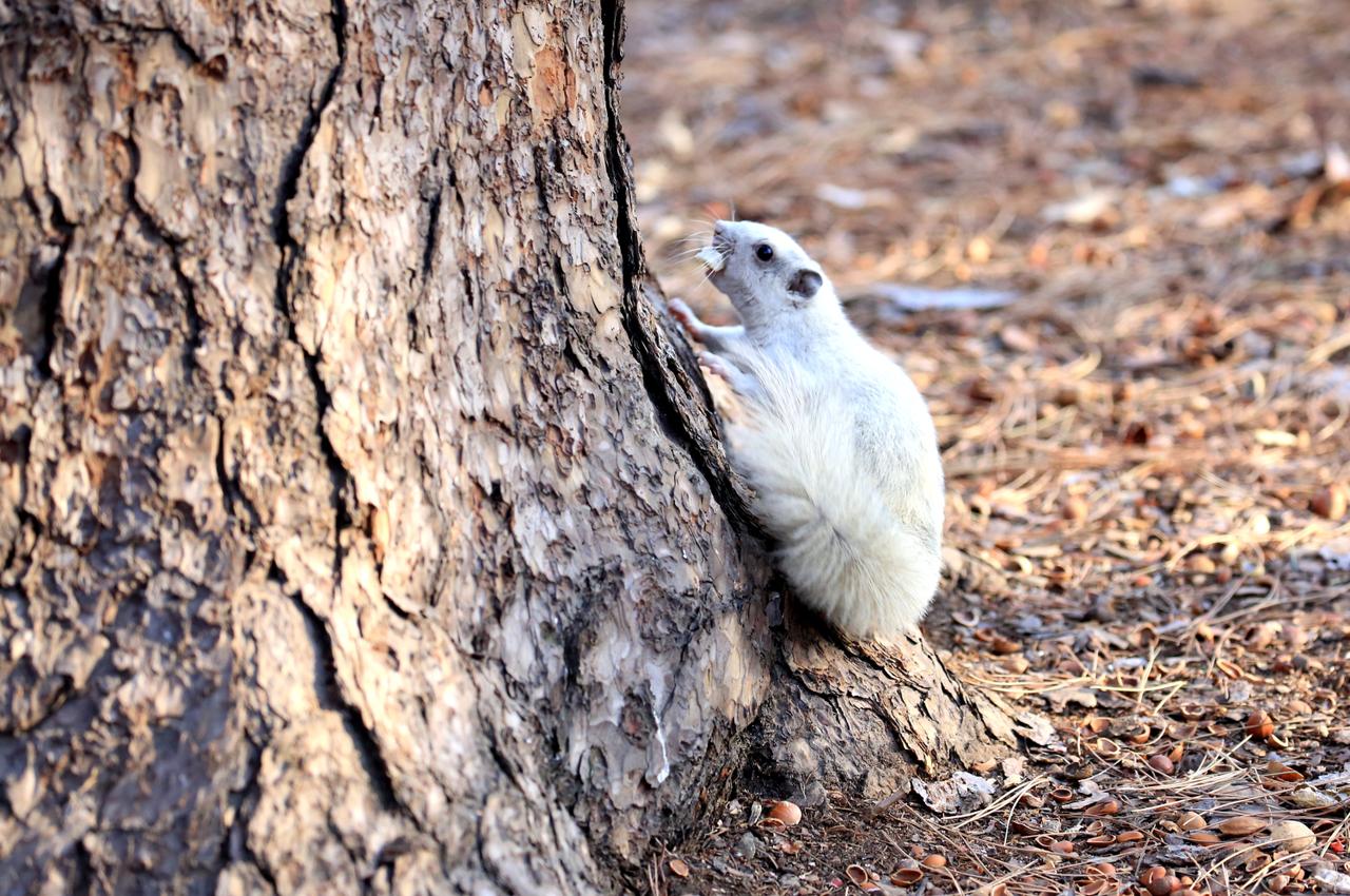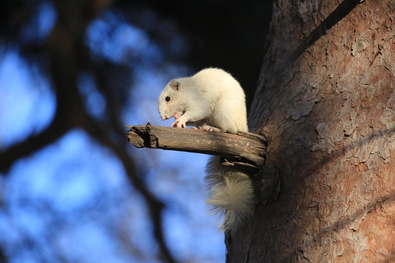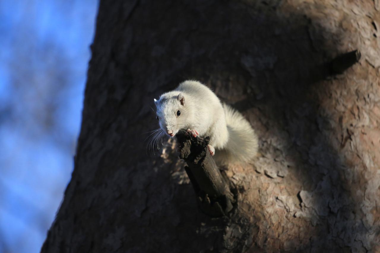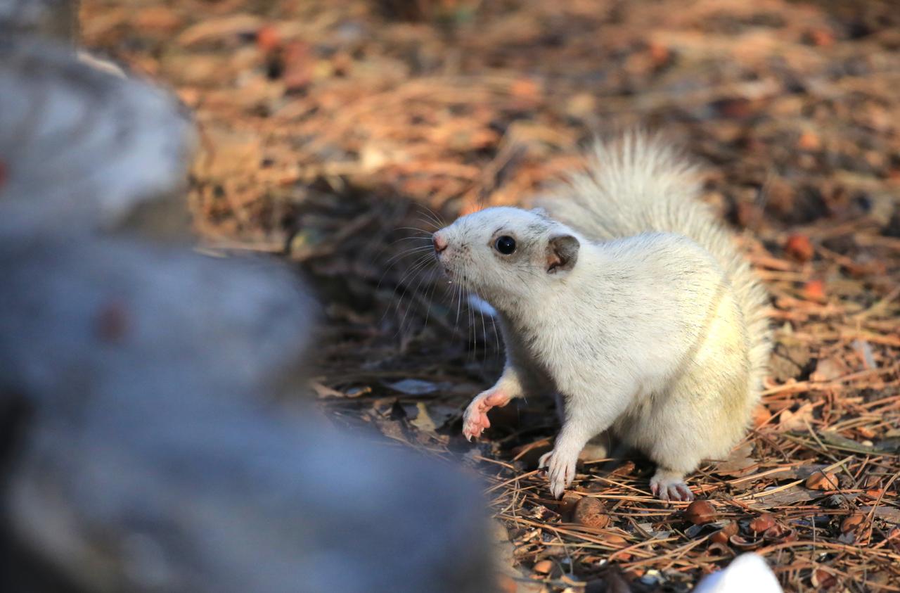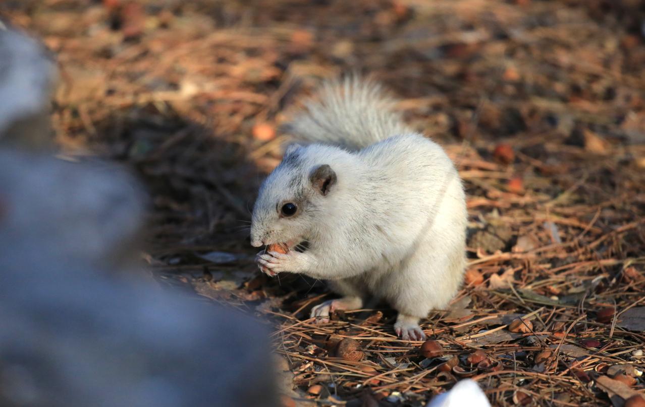 沈阳北陵公园惊现白色小松鼠