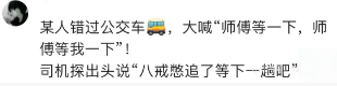 某人错过公交车,大喊"师傅等一下,师傅等我一下"! 司机探出头说"八戒憋追了等下一趟吧"