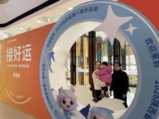 与此同时,浓厚的体育盛会氛围也从公共空间延伸至城市商业综合体。榆林万达广场着力营造沉浸式参与氛围,特别设置了省一冬会“接好运”主题打卡点,融合吉祥物等视觉元素,吸引众多市民驻足互动、拍照留念。