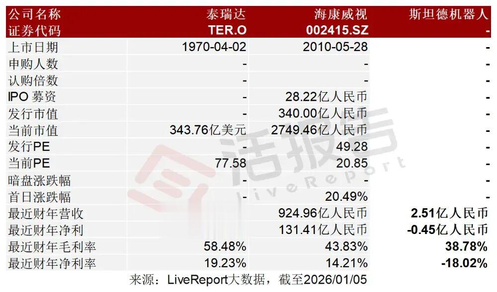 同行业IPO可比公司:泰瑞达(TER.O)、海康威视(002415.SZ)