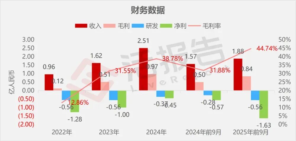 收入分别约为人民币0.96亿、1.62亿、2.51亿、1.57亿、1.88亿,2025年前9月同比+19.66%;