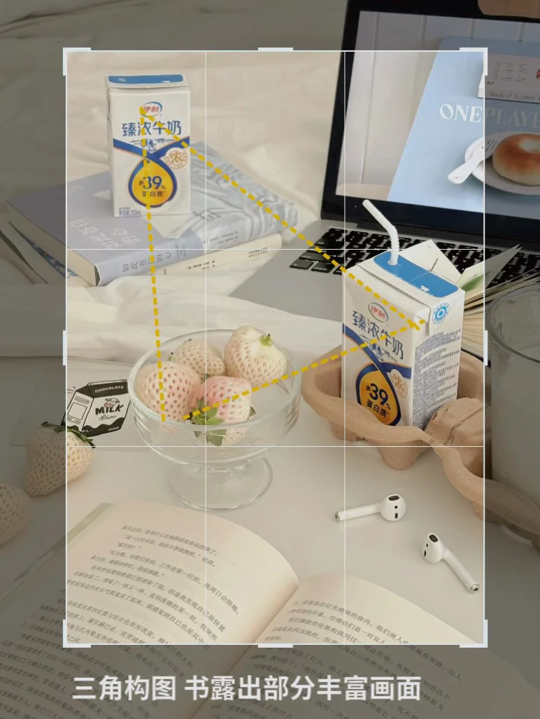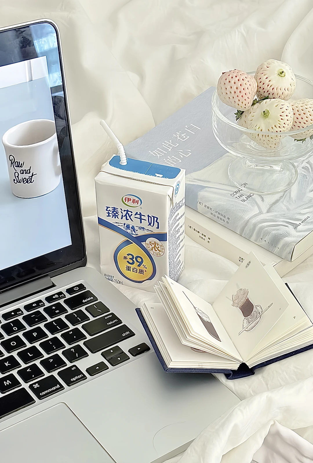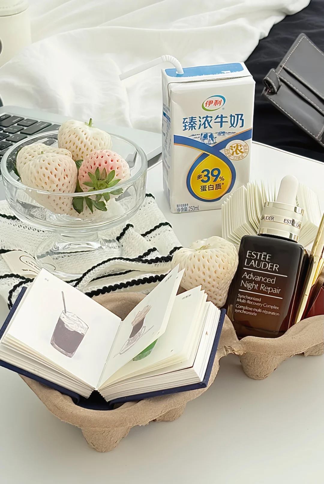透明玻璃杯盛白草莓🍓➕几本书📕