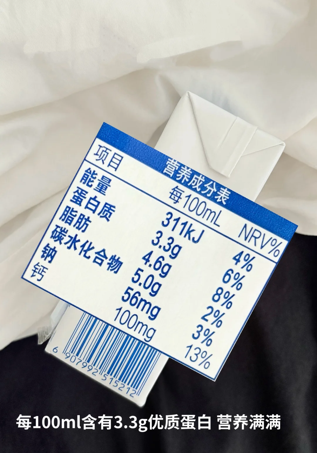 它家这款臻浓牛奶每100ml含3.3g优质蛋白