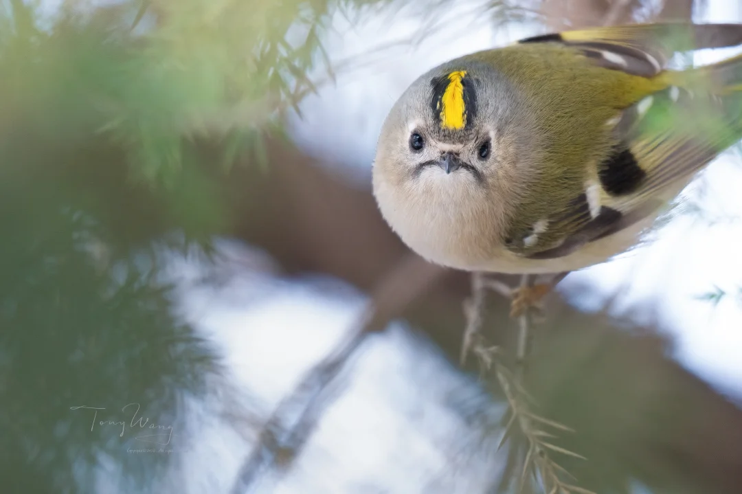 这大周末的☹️ 呆橘的正脸永远是☹️☹️☹️☹️☹️ 黑色豆豆眼,嘴边的两条黑色纹路让它正面看起来不太开心, 今年南方北方的戴菊可真不少,只要在针叶林中仔细寻找高频的“滋滋”声,就能找到这些顶着一张☹️脸的小家伙啦!