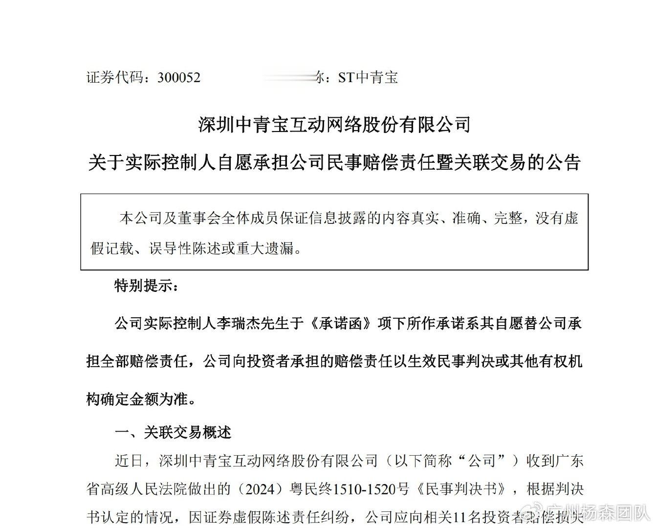 近日,投资者索赔中青宝300052证券虚假陈述案件,法院作出一审判决,支持股民的部分赔偿请求。