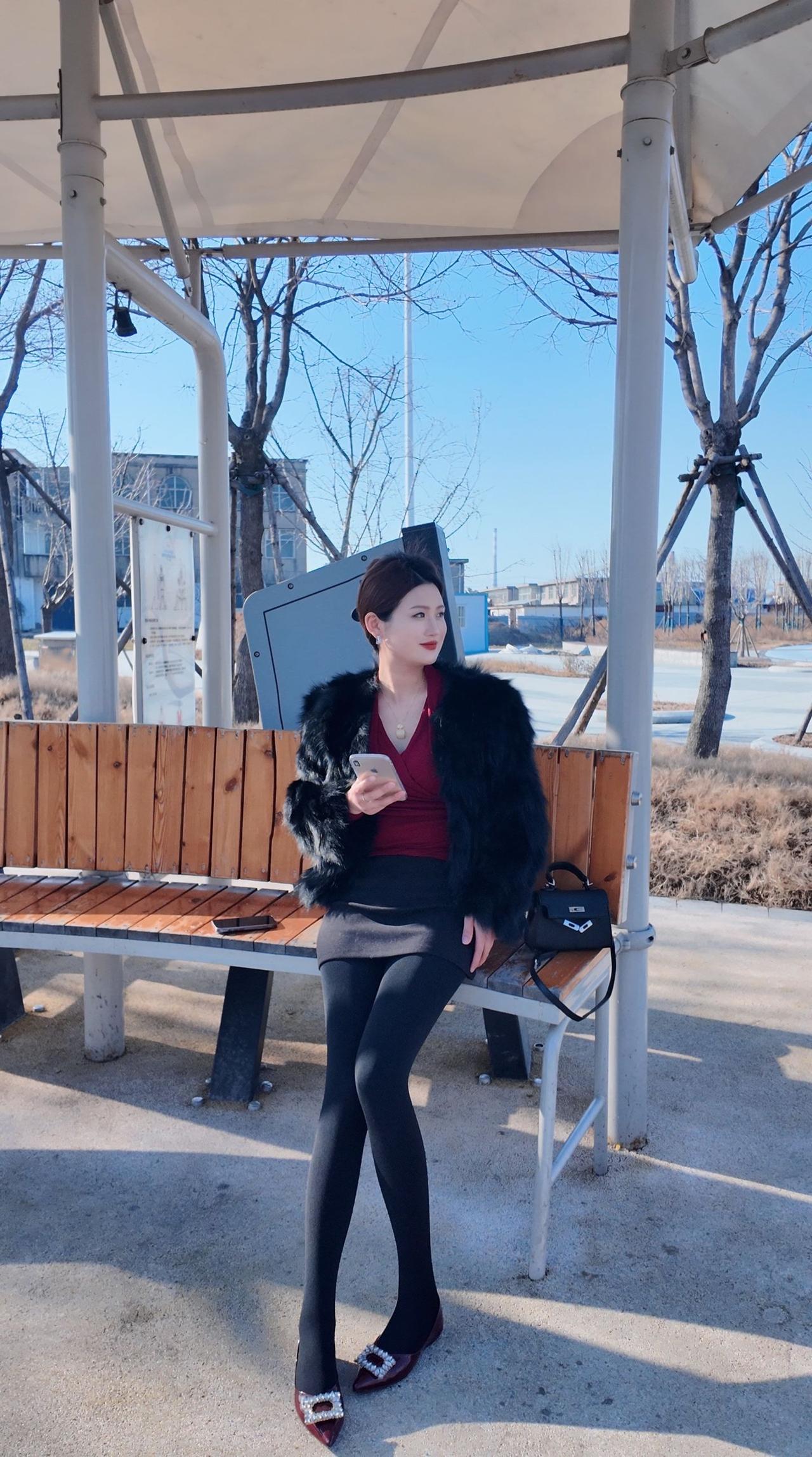 冬日穿搭指南:毛绒外套+红裙,温暖又时尚!