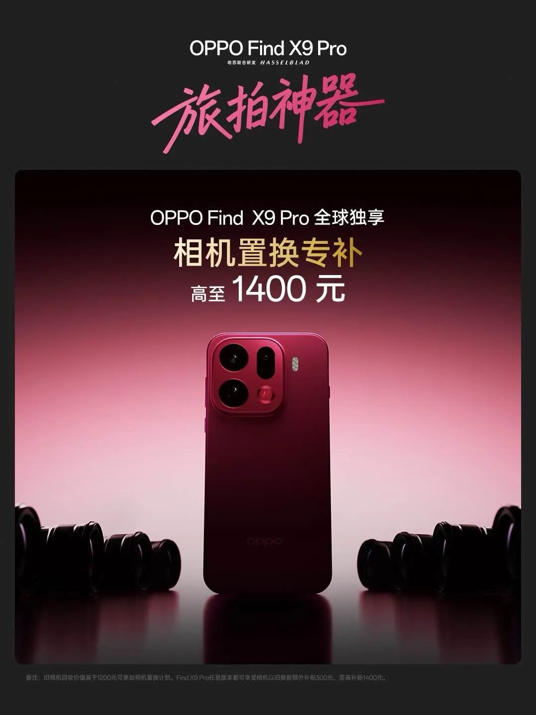 通过将哈苏的光学理解、索尼的传感器技术与自研计算摄影架构深度融合,OPPO证明了高质量影像未必需要复杂的设备和繁琐的流程。而OPPO也同步推出了相机置换专补,用户可以参与活动将自己手里的相机置换为 Find X9 Pro ,可享受官方至高 1400 元补贴,为更多创作者提供了一条更具性价比的路径,去亲身体验这种“画质革命”带来的改变。