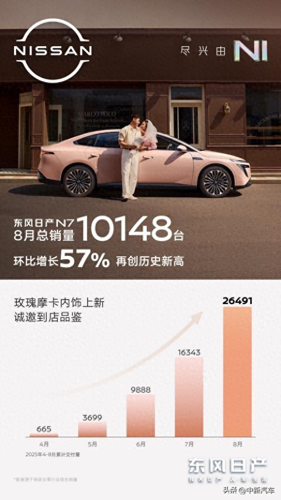 从0到26,491辆,东风日产N7仅用四个月的时间,不仅印证了其强大的产品力,更打破了市场对合资新能源产品长久以来的偏见,树立起“合资新势力”的全新标杆。这一成绩的背后,是数万位用户用信任投出的赞成票,也是东风日产品牌体系化实力的集中体现。