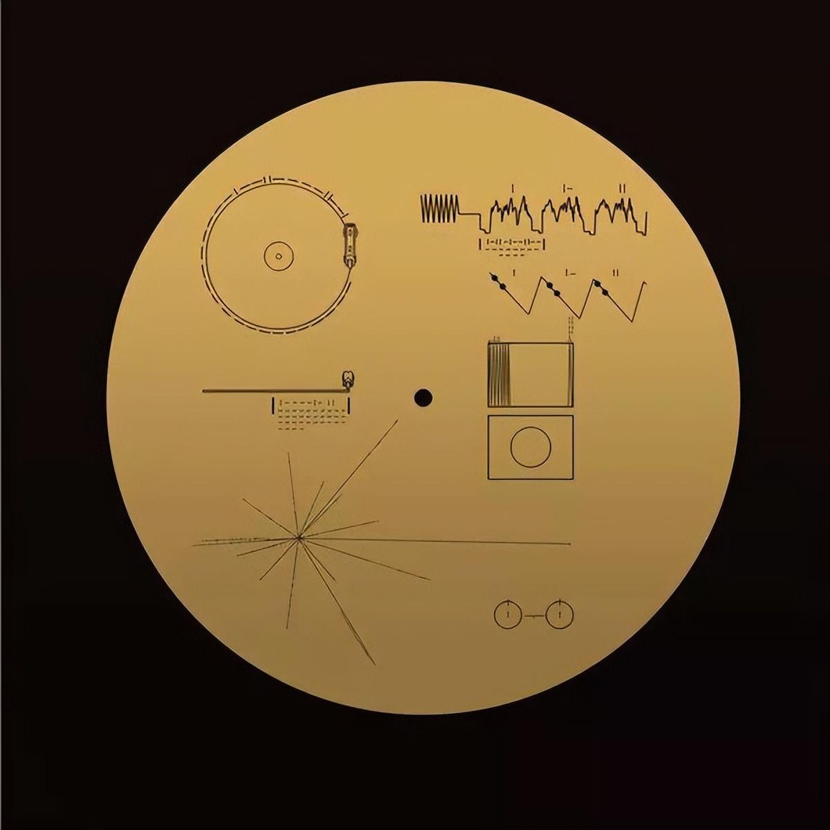 简单来说,即使旅行者1号和2号探测器在宇宙中受到风化影响,但丝毫不影响金唱片的质量,这个金唱片就像是一个漂流瓶,不知道什么时候就会被外星文明发现, 在这个金唱片中,科学家刻录了地球的位置、大自然的声音、人类的声音、动物的声音、地球的各种图片等等,为了让外星文明能够更清楚的了解这个金唱片,当时天文学家卡尔.萨根还联合美国国家航天局为其制作了一个特殊的封面,这个封面上有很多符号,左上角的原型是以二进制数字制作的,所表达的内容是唱片的正常运转速度为3.6秒/转,右下角两个连接的圆圈,表示氢原子的低能状态。