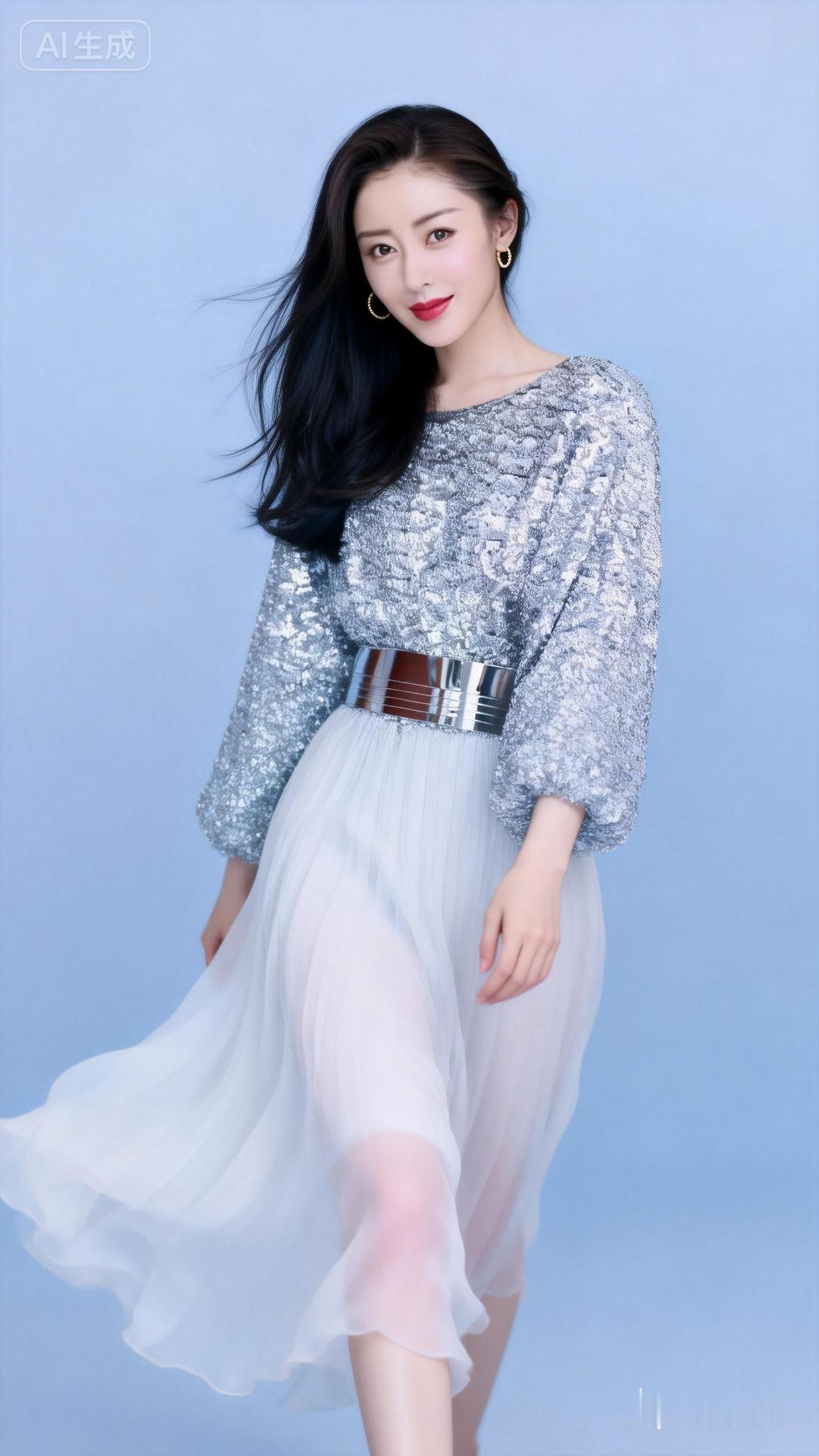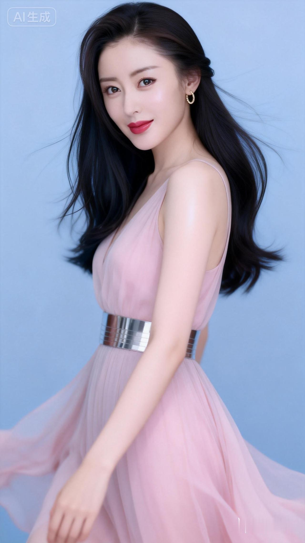 温柔甜美的少女,蓝色吊带裙搭配白色蝴蝶结,清新自然。