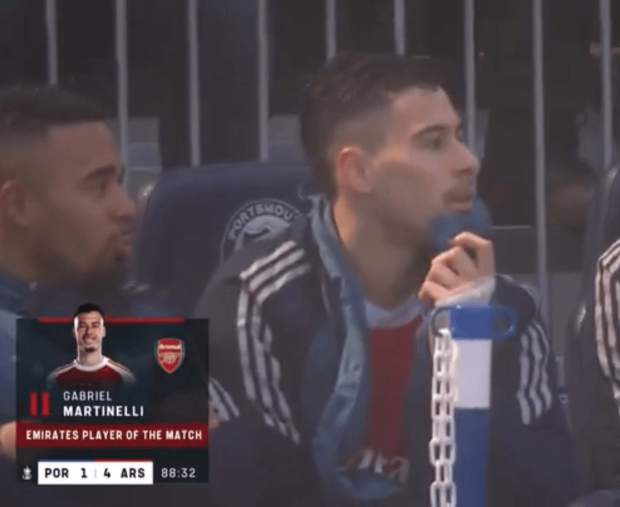 本场比赛上演帽子戏法的阿森纳前锋马丁内利也当选全场比赛最佳球员。