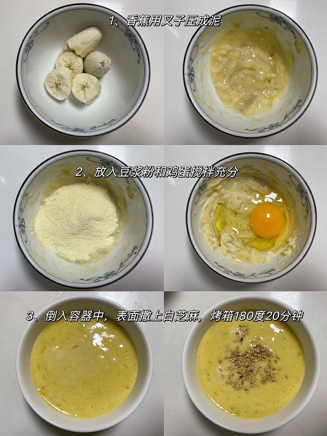 食材:鸡蛋1个、无糖豆浆粉35g、香蕉1根