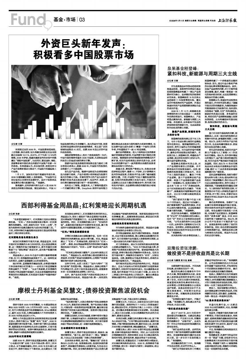 2026年1月13日,刚登峰在泉果管理的首只开放式基金——泉果竞争优势即将发行。刚登峰表示,产品将重点聚焦科技、新能源与周期三大领域。在他看来,这些板块不仅是经济结构转型的重要方向,也是其获取阿尔法收益的核心来源。