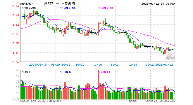 1月12日,酒ETF(512690)开盘涨0.00%,报0.547元。酒ETF(512690)重仓股方面,贵州茅台开盘涨0.00%,五粮液涨0.01%,泸州老窖涨0.01%,山西汾酒涨0.04%,洋河股份涨0.02%,今世缘涨0.08%,古井贡酒跌0.33%,青岛啤酒涨0.03%,燕京啤酒跌0.33%,酒鬼酒跌0.58%。
