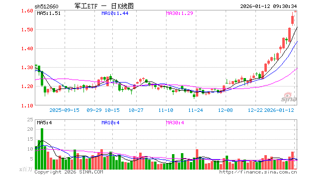 军工ETF(512660)业绩比较基准为中证军工指数收益率,管理人为国泰基金管理有限公司,基金经理为艾小军,成立(2016-07-26)以来回报为55.64%,近一个月回报为27.99%。