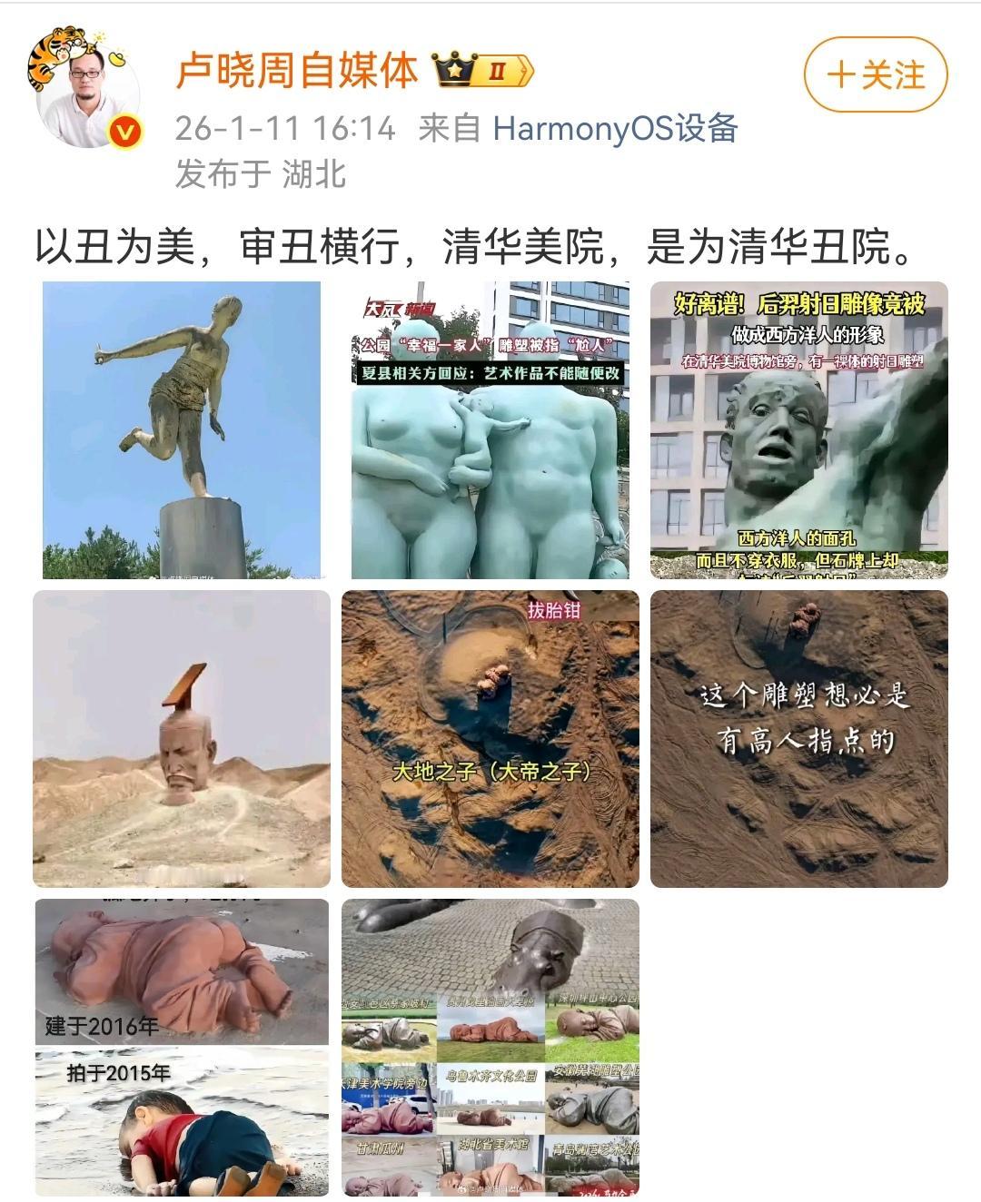就应该拆除这些狗皮膏药。 (图一)有网友贴图,在天津闹市区的某“大地之子”已经被拆除,全国还有20多个类似的狗皮膏药。 (图二)国内某美院的很多雕像作品,这些作品都属于不知所云、挂羊头卖狗肉、以丑为美,是时候拨乱反正,拆除这些狗皮膏药。