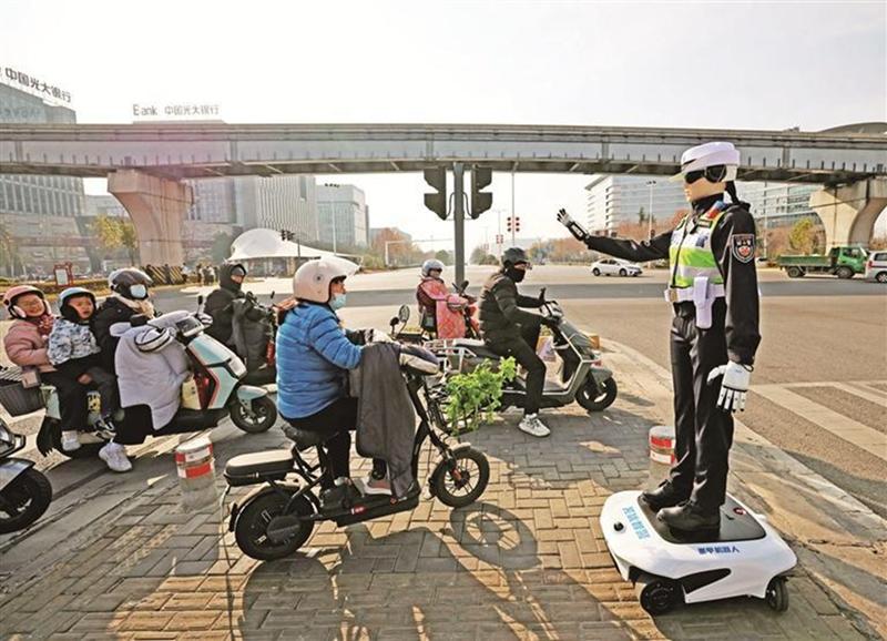 图为AI交通管理机器人街头执勤。特约摄影师王玉实摄