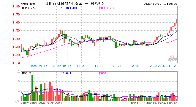 科创新材料ETF汇添富(589180)业绩比较基准为上证科创板新材料指数收益率,管理人为汇添富基金管理股份有限公司,基金经理为罗昊,成立(2025-06-05)以来回报为58.32%,近一个月回报为18.65%。